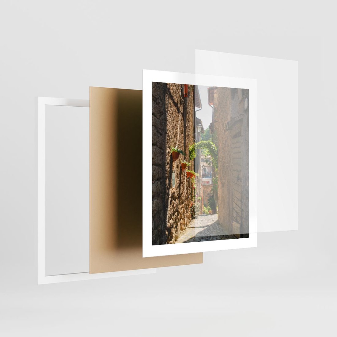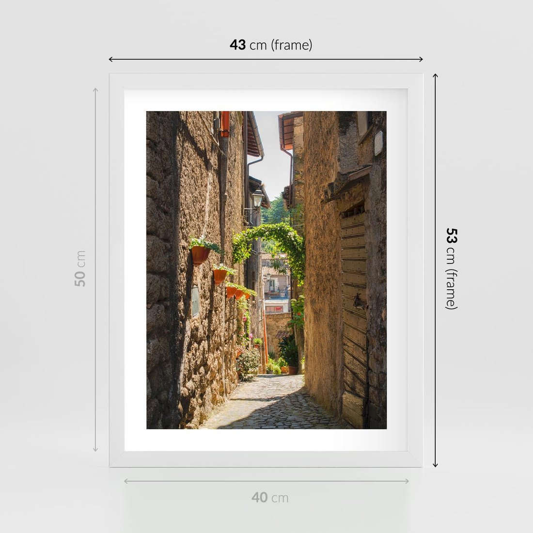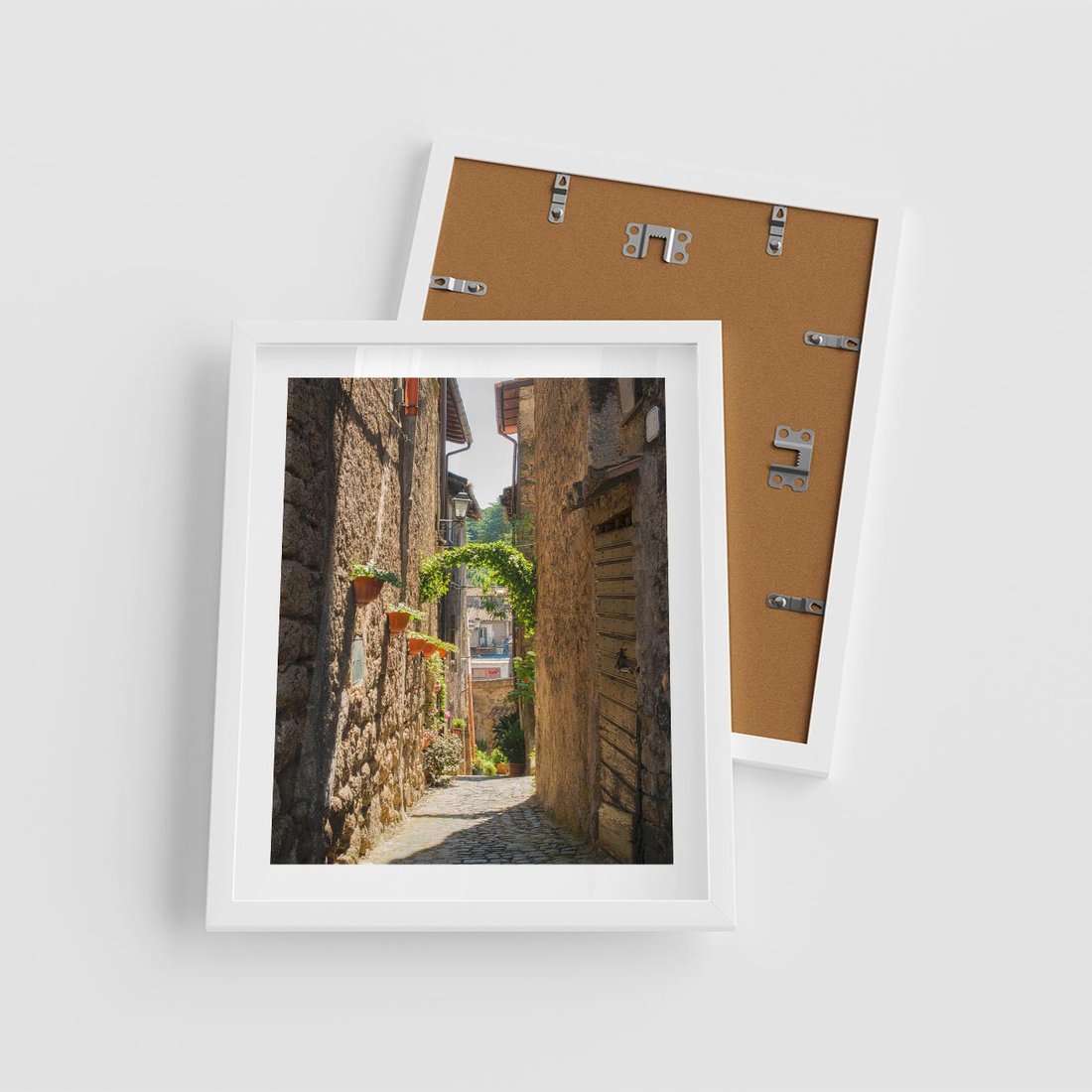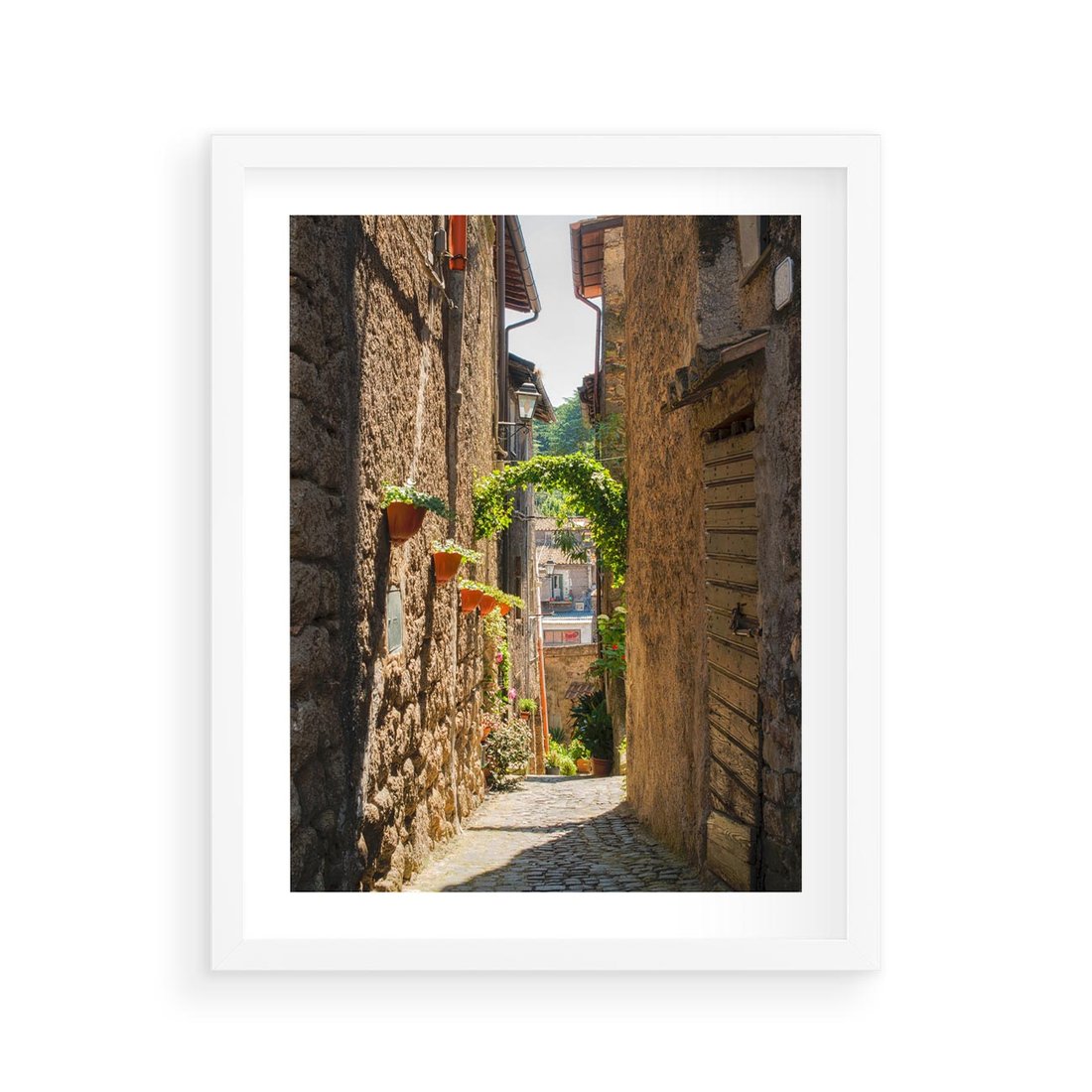 Plakat w ramie 40x50 - Włoska uliczka w perspektywie - Włochy, uliczka - rama biała