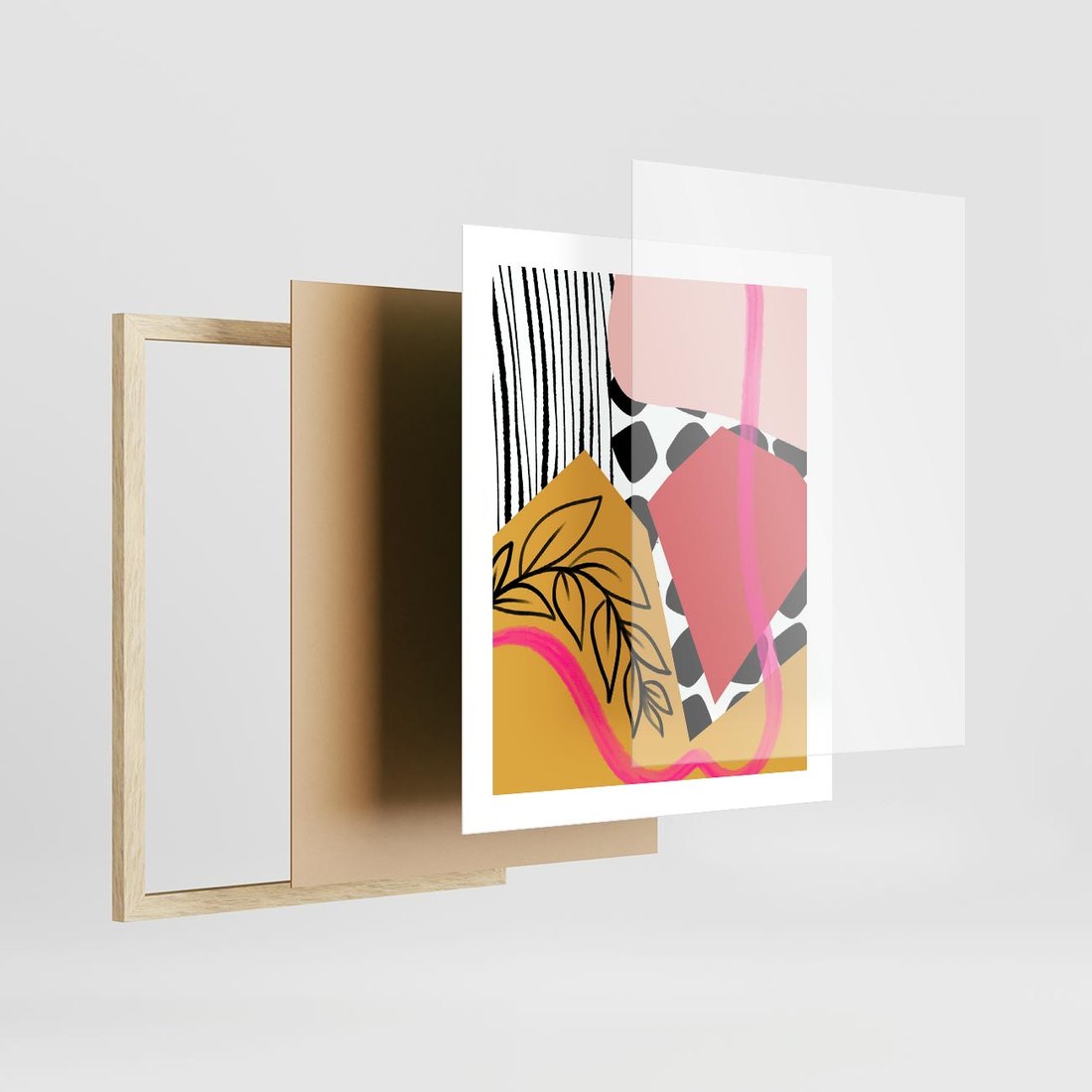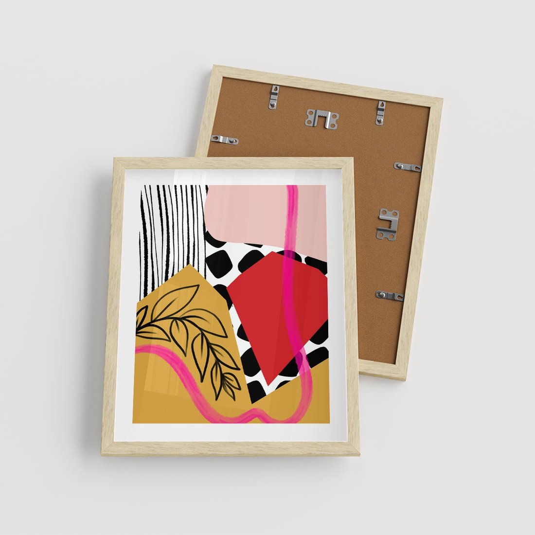 Plakat w ramie 40x50 - Wnętrza Form - abstrakcyjna kompozycja, różne tekstury - rama drewno