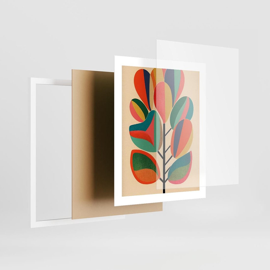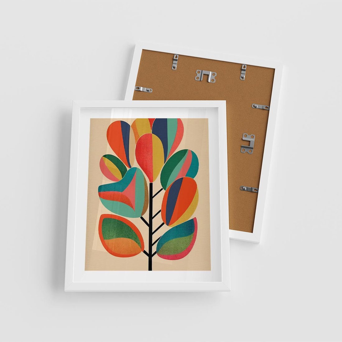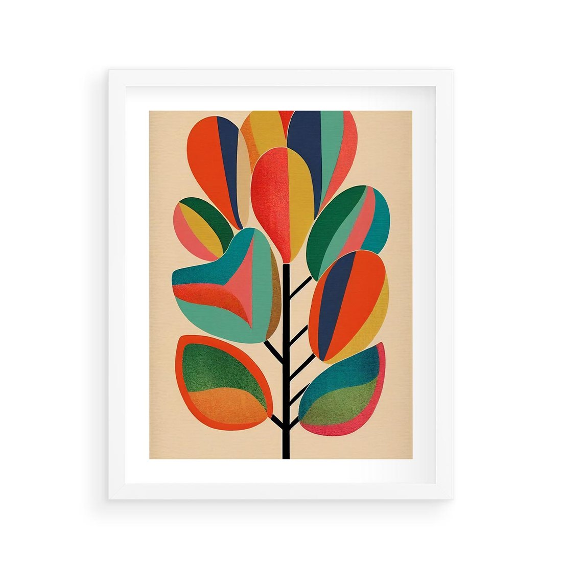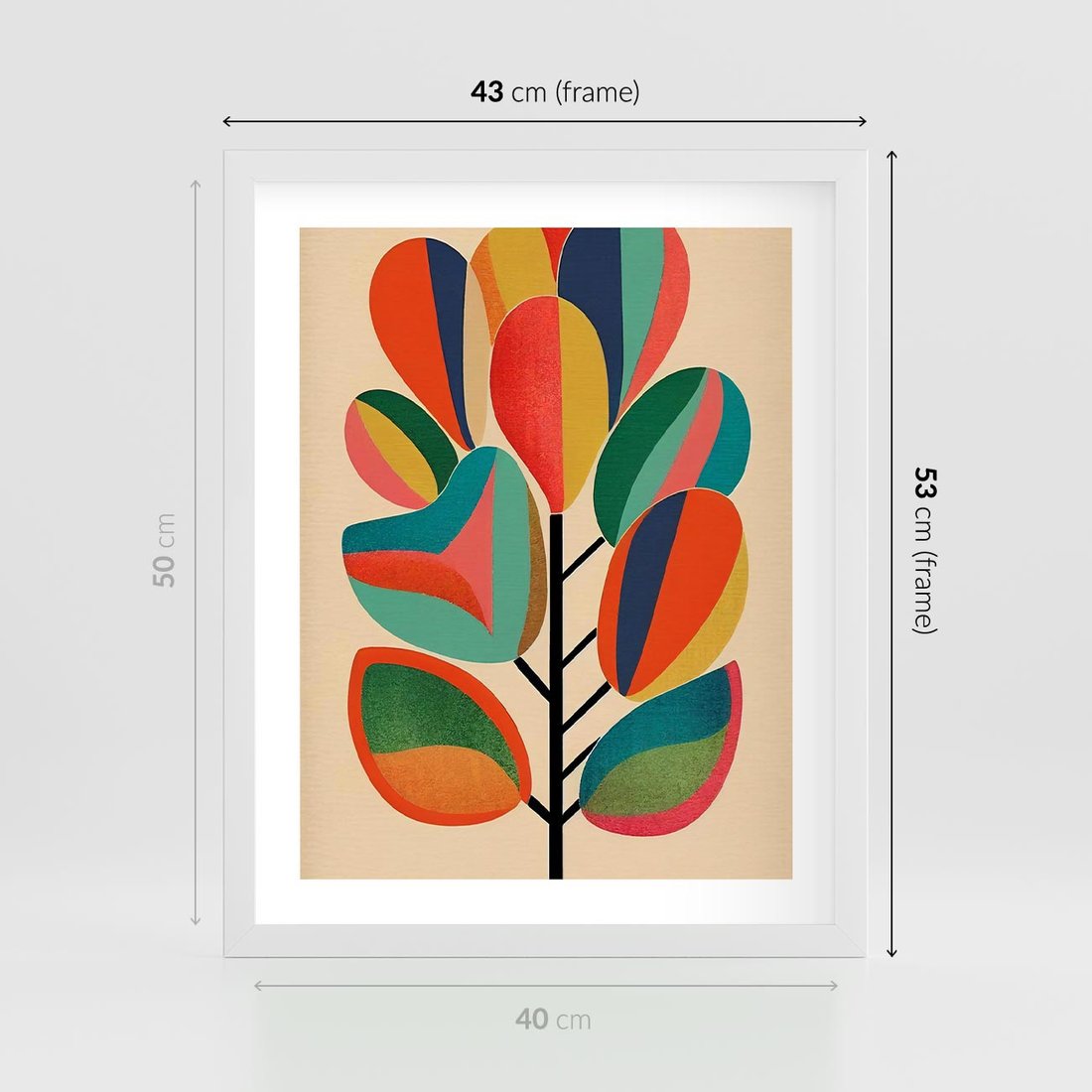 Plakat w ramie 40x50 - Wnętrza Kształtów - abstrakcyjny kolorowy tęczowy obraz, inspiracje roślinne - rama biała