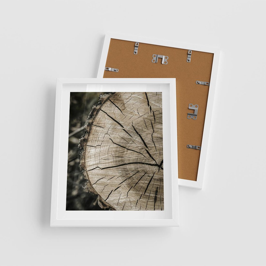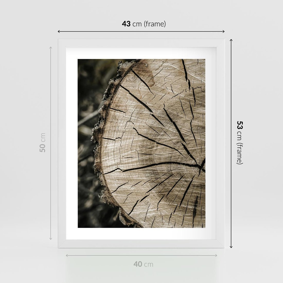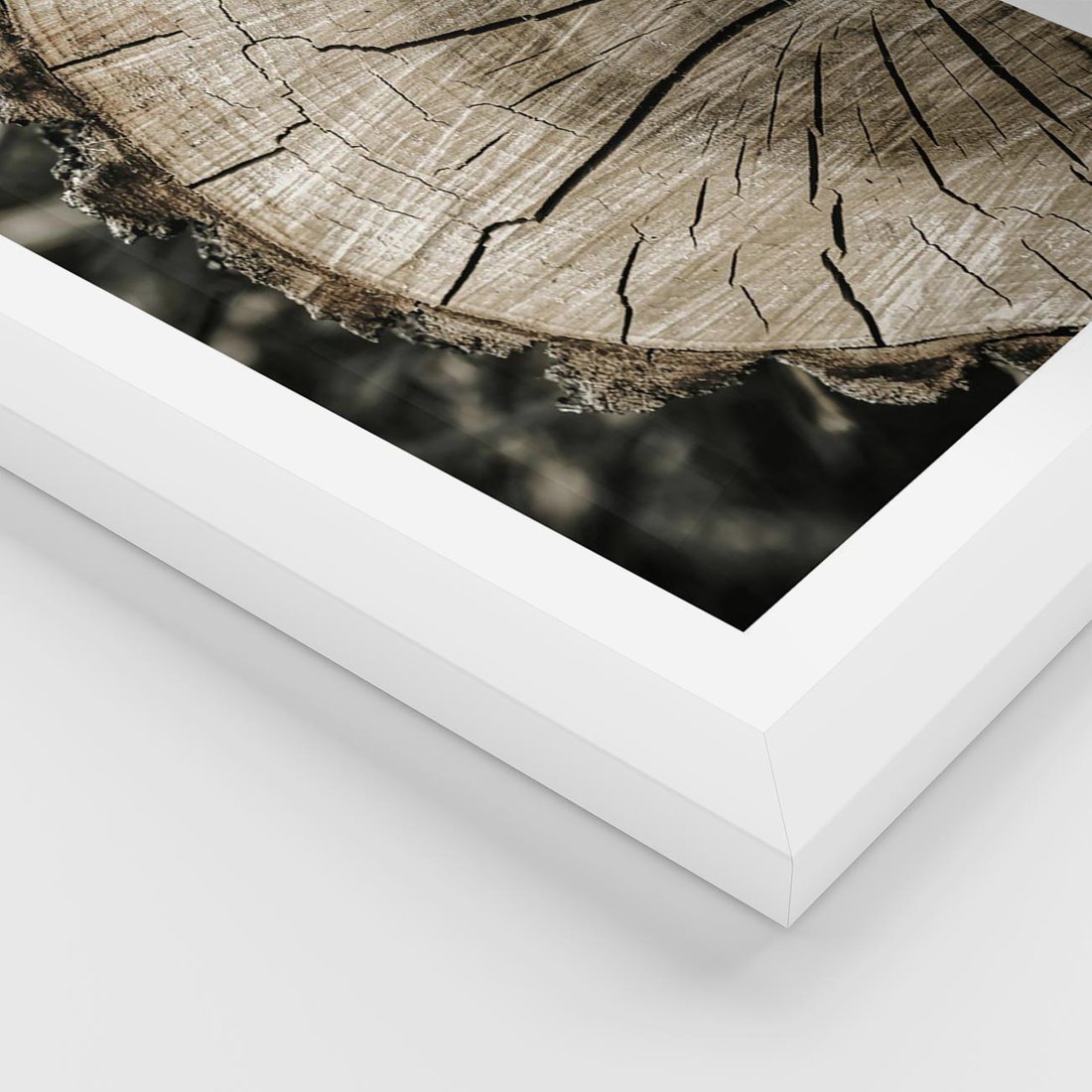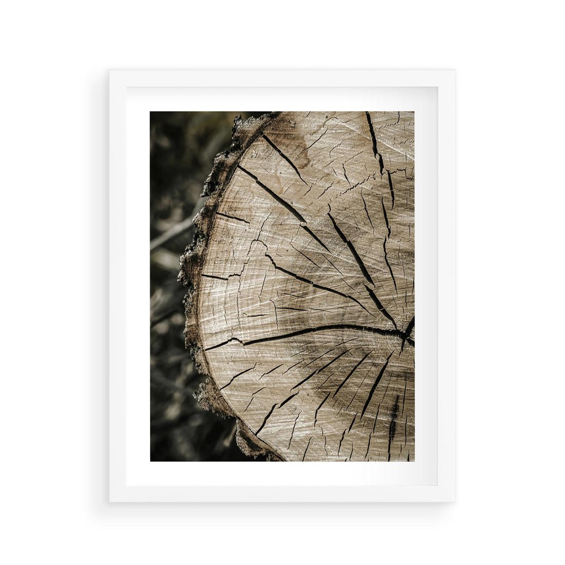 Plakat w ramie 40x50 - Wnętrze Natury - pień, przecięty pień - rama biała