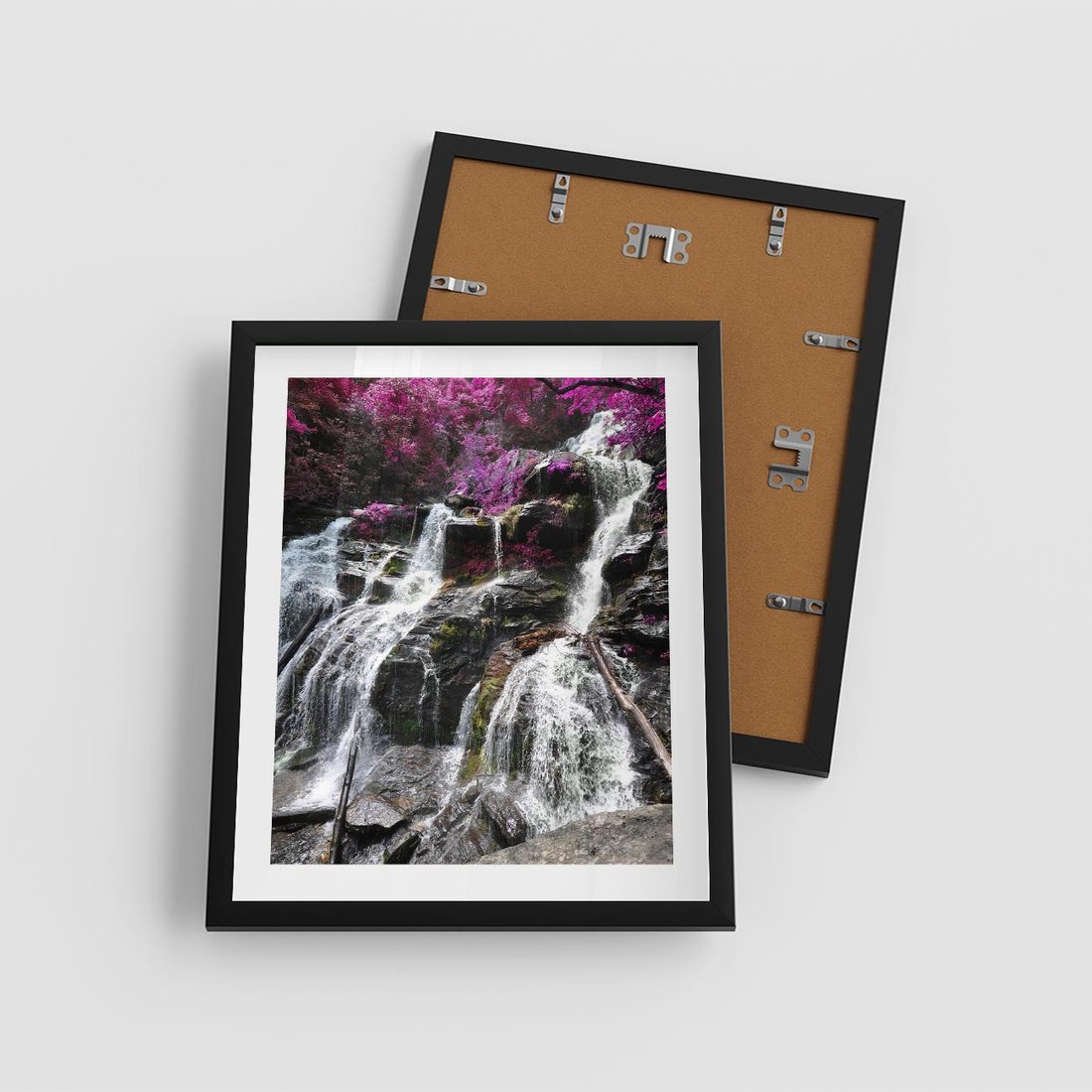 Plakat w ramie 40x50 - Wodospad wśród majestatycznych gór - wodospad, góry - rama czarna