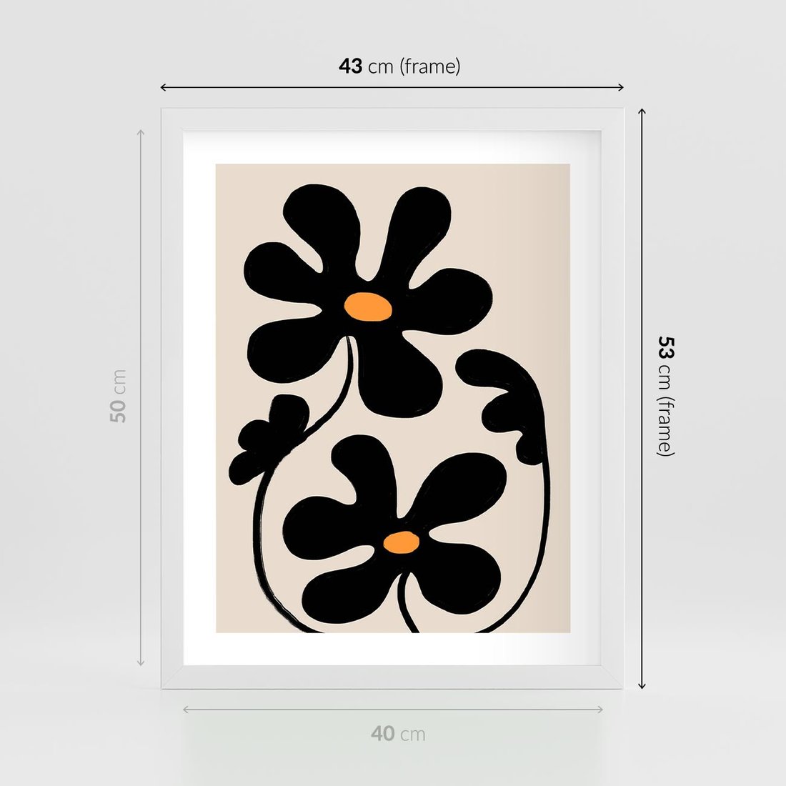 Plakat w ramie 40x50 - Wyjątkowość Boho - minimalistyczny abstrakcyjny obraz, prymitywne kwiaty - rama biała