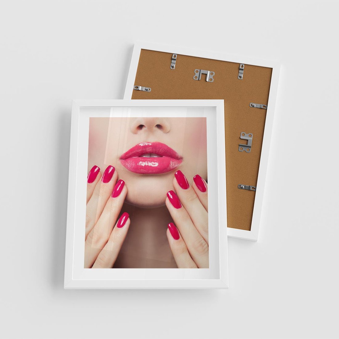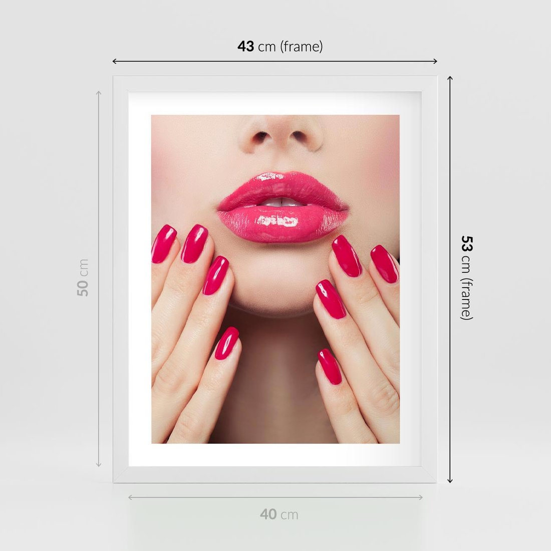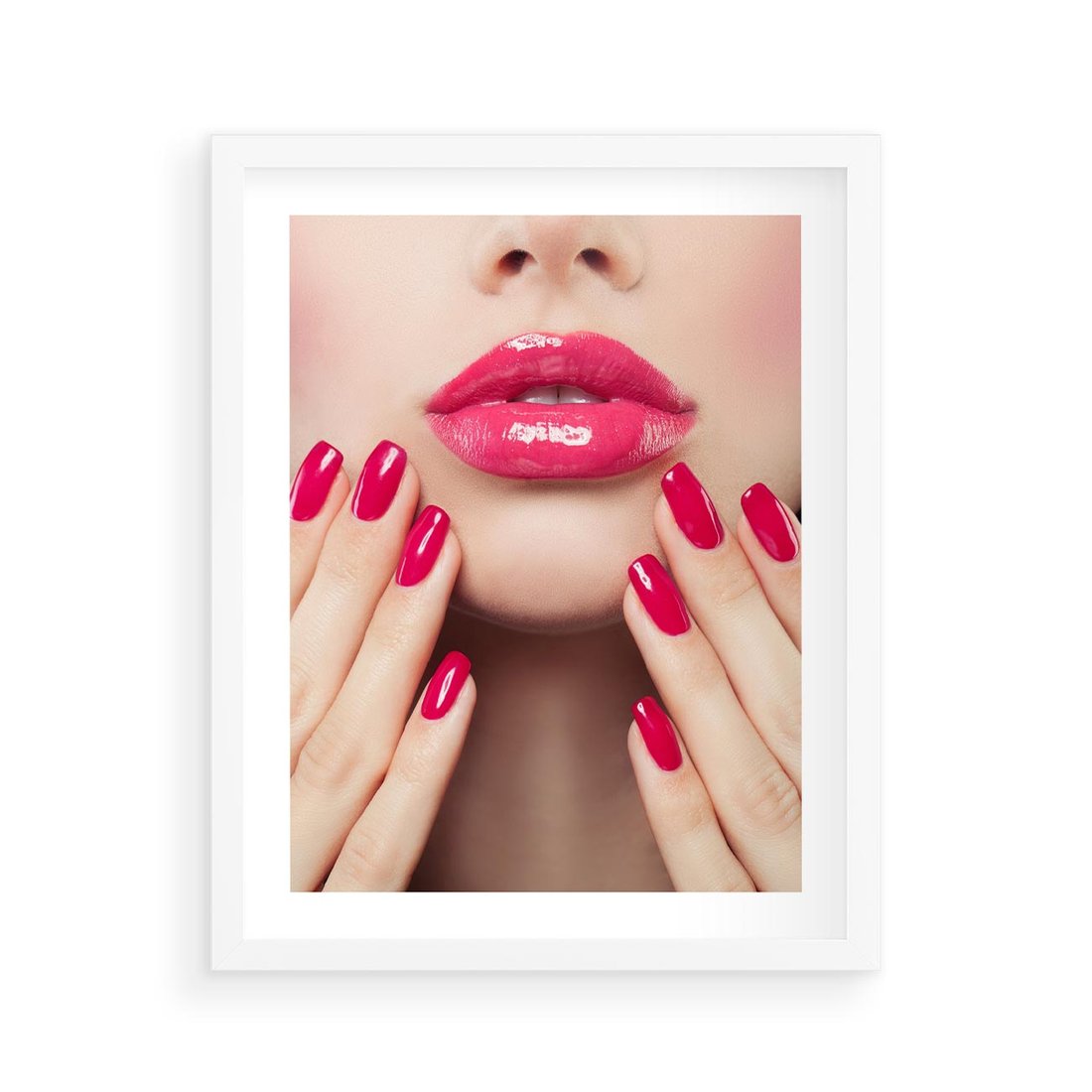 Plakat w ramie 40x50 - Wyrażenie Piękna - paznokcie, usta - rama biała