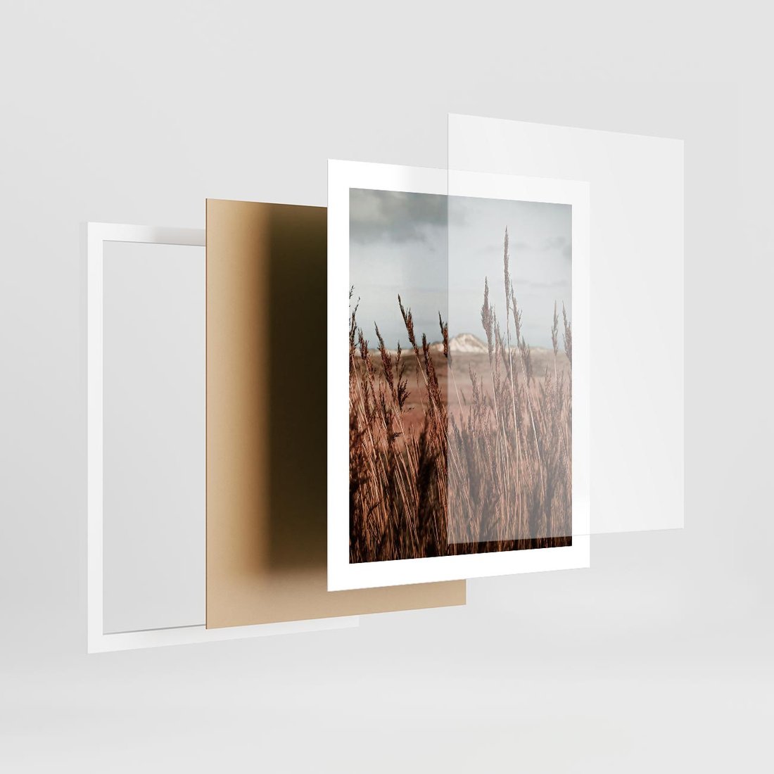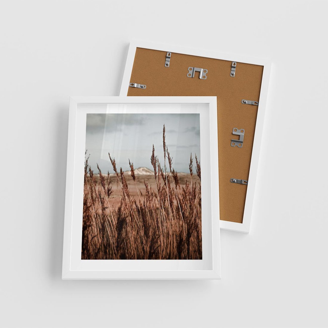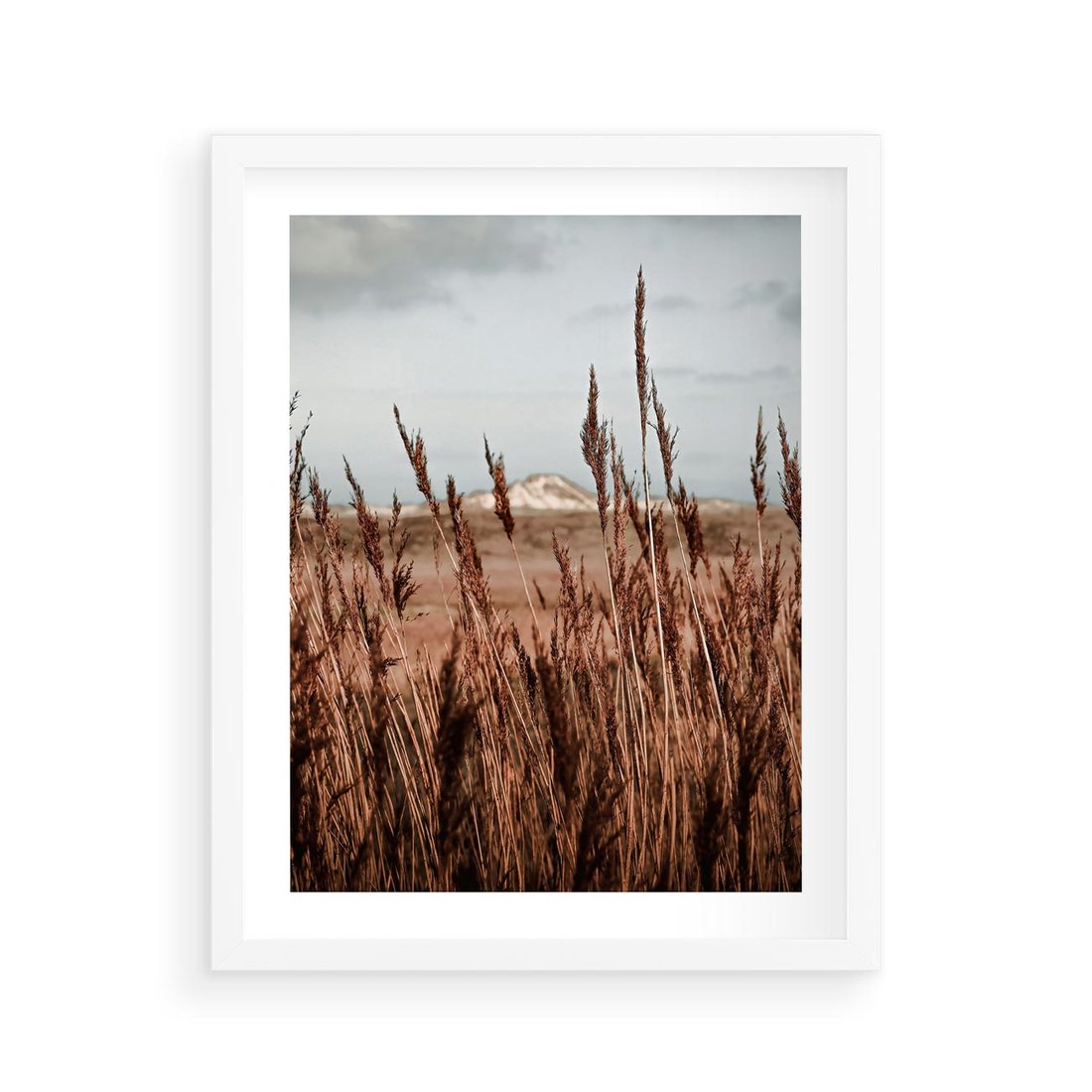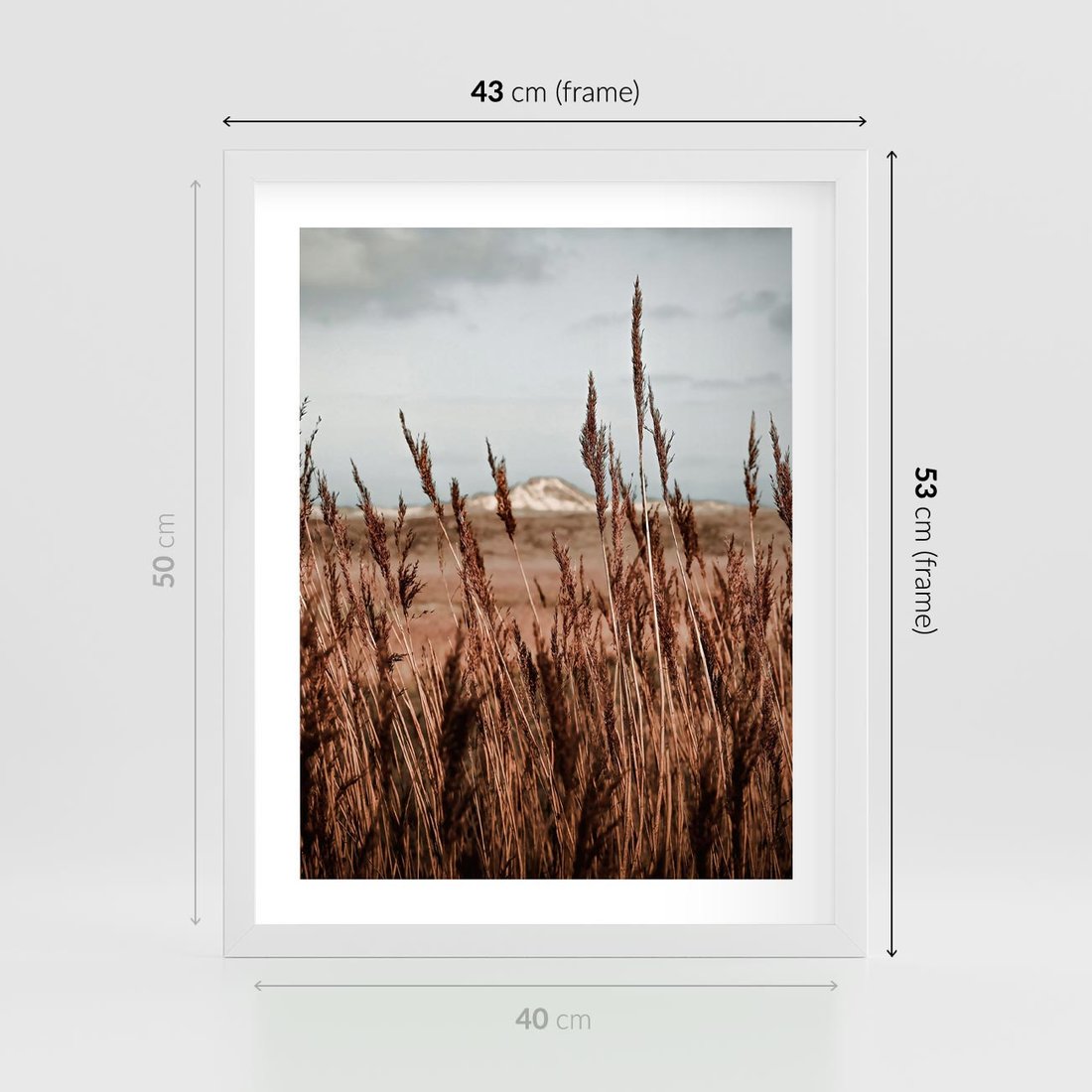 Plakat w ramie 40x50 - Wysokie Trawy w Górskim Krajobrazie - suche trawy, wysokie trawy - rama biała