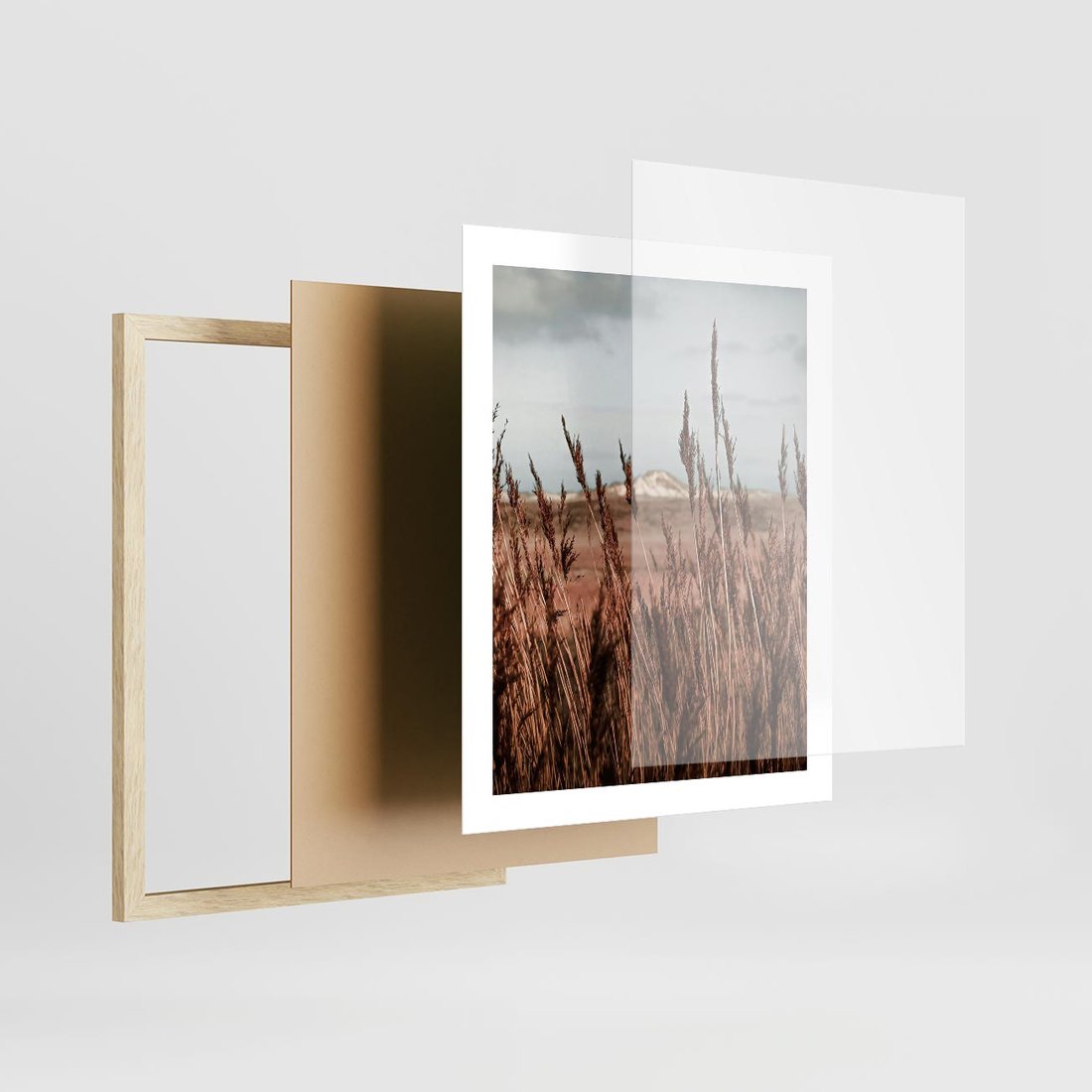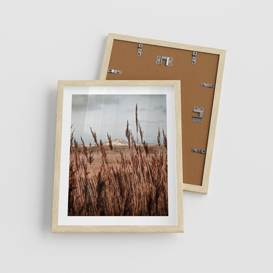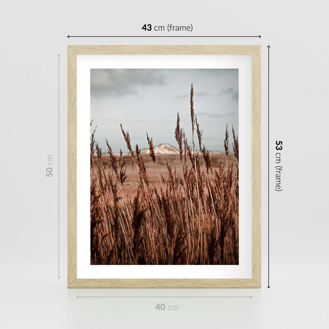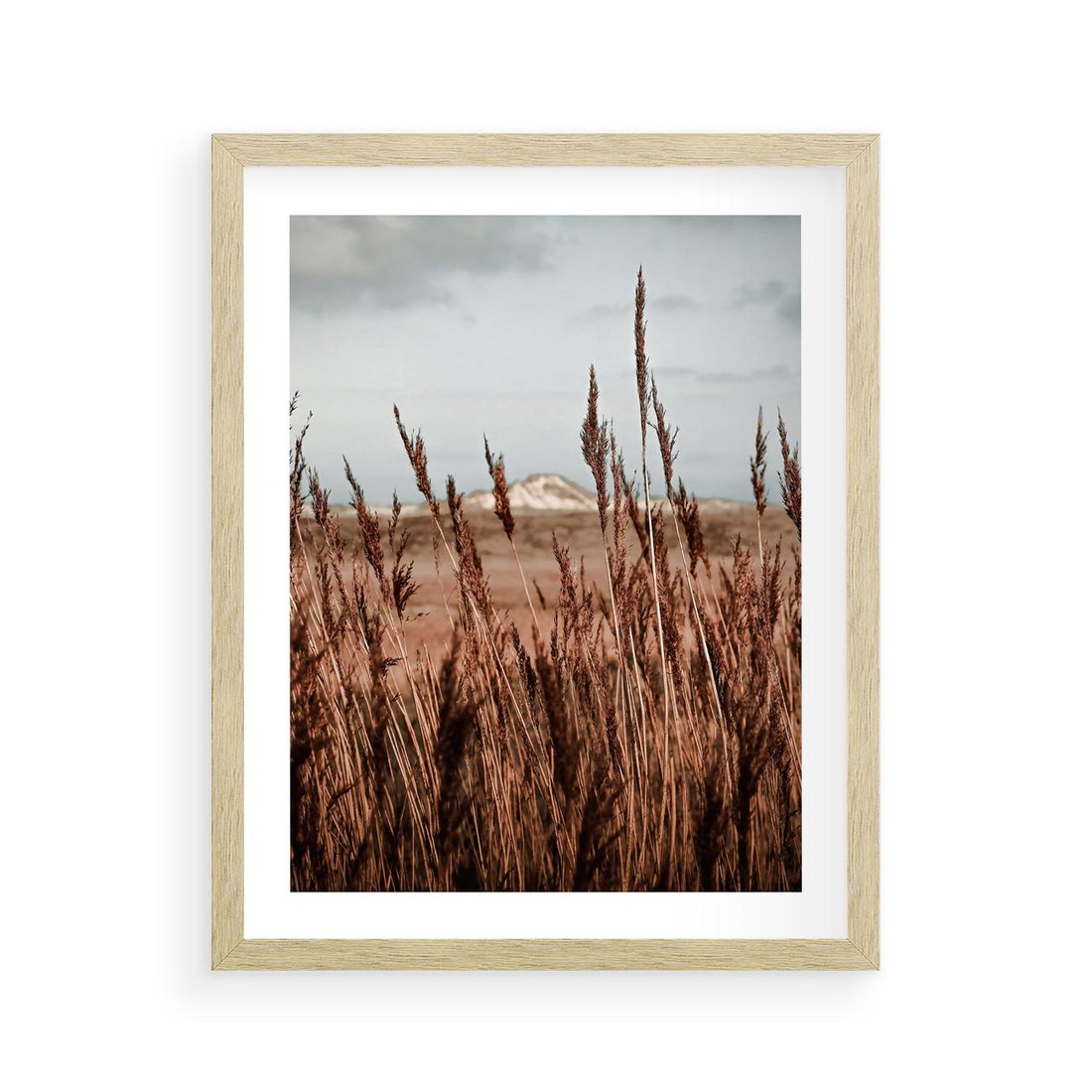 Plakat w ramie 40x50 - Wysokie Trawy w Górskim Krajobrazie - suche trawy, wysokie trawy - rama drewno