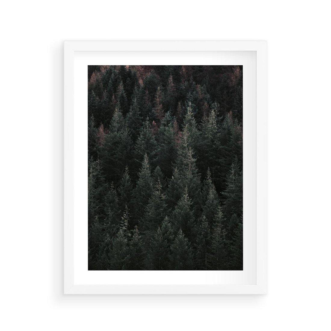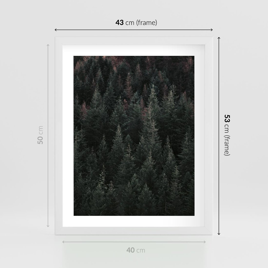 Plakat w ramie 40x50 - Wysoko nad Iglastym Lasem - las, perspektywa - rama biała