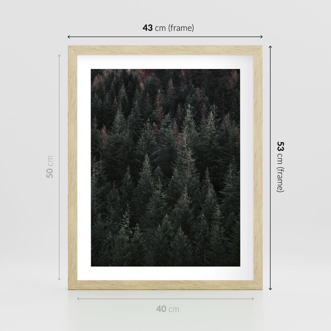 Plakat w ramie 40x50 - Wysoko nad Iglastym Lasem - las, perspektywa - rama drewno