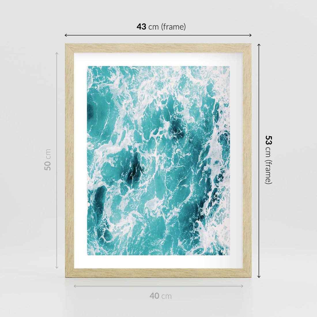 Plakat w ramie 40x50 - Wzburzony Ocean: Widok Z Góry - wzburzony ocean, błękitna woda - rama drewno