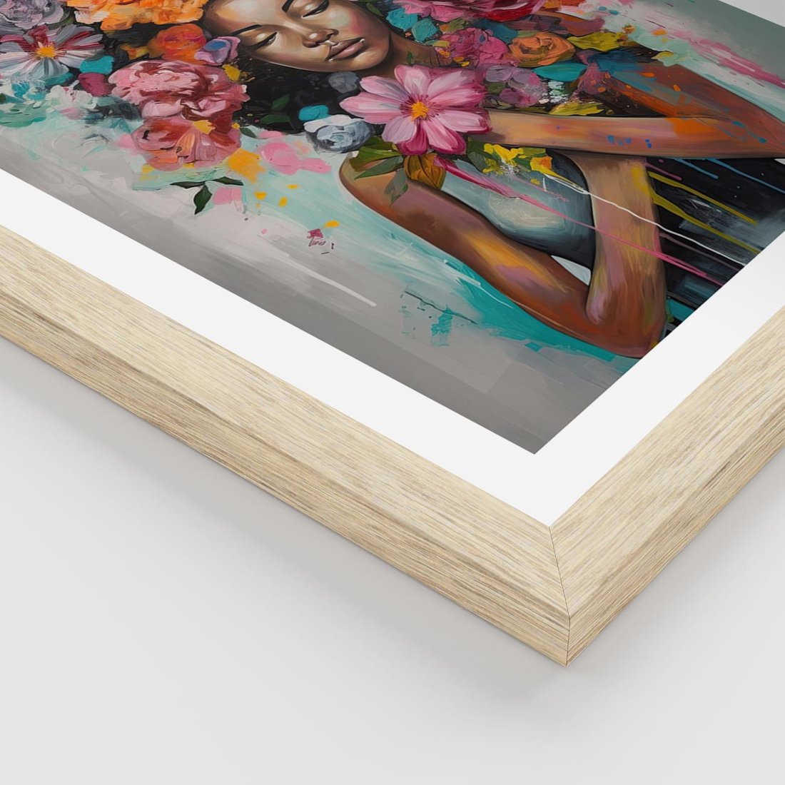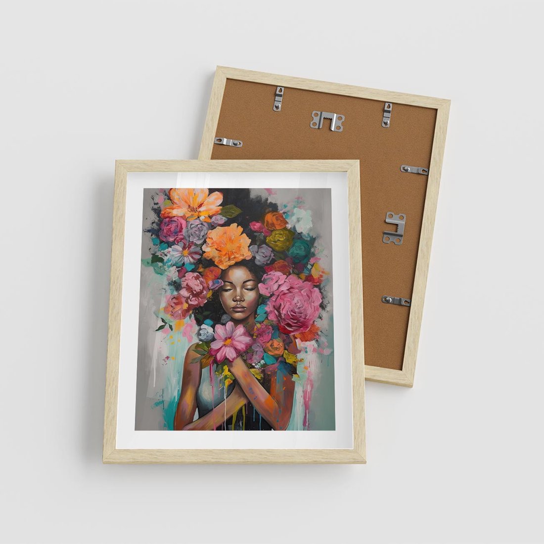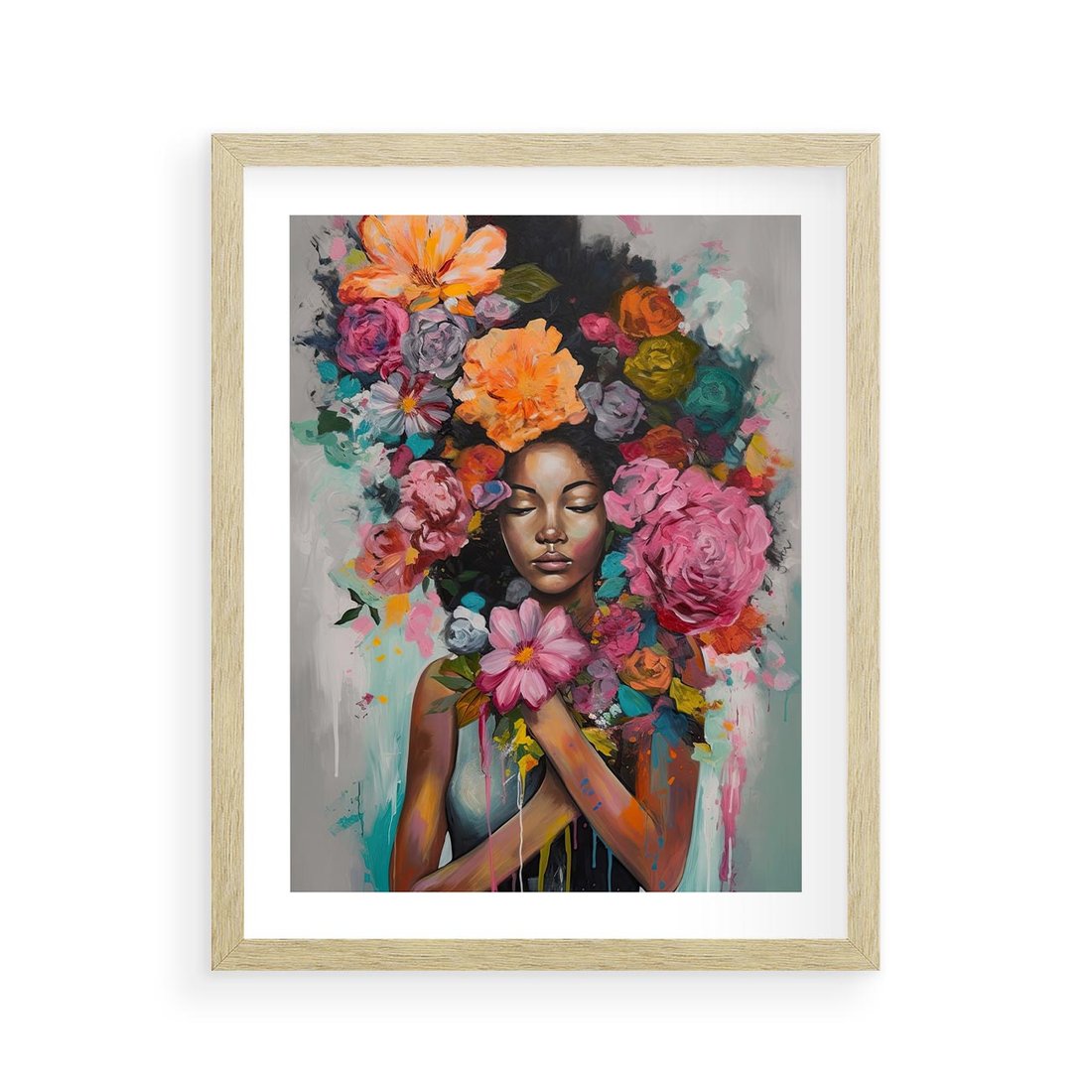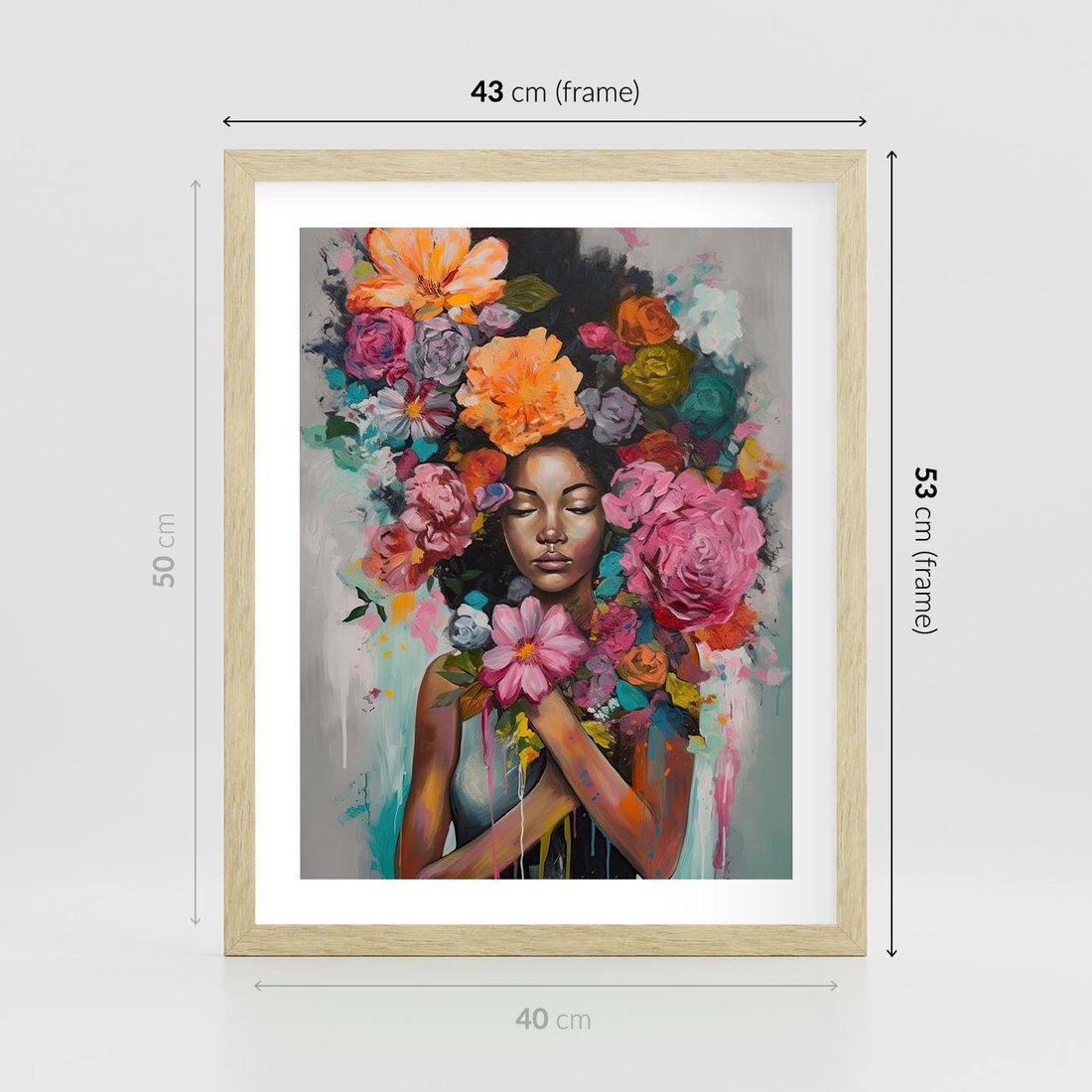 Plakat w ramie 40x50 - Z Głową w Kwiatach - obraz olejny, sztuka nowoczesna - rama drewno