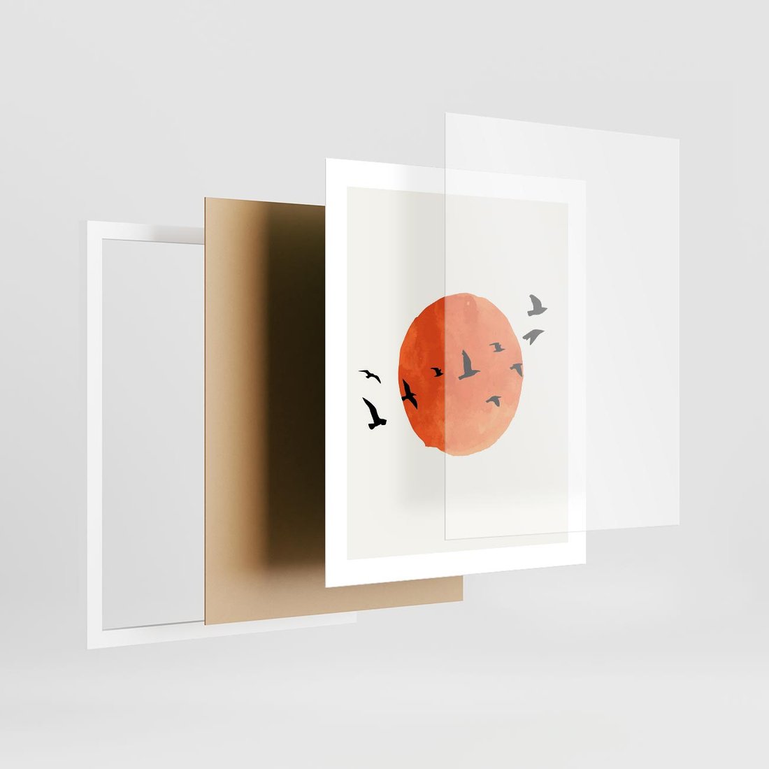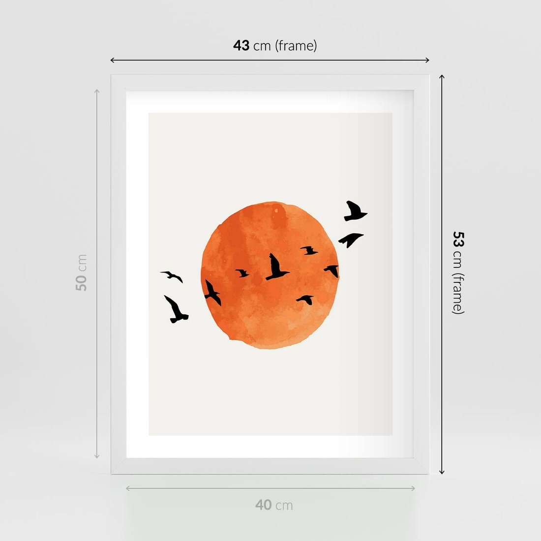 - Plakat w ramie 40x50 - Zachód Słońca i Ptaki