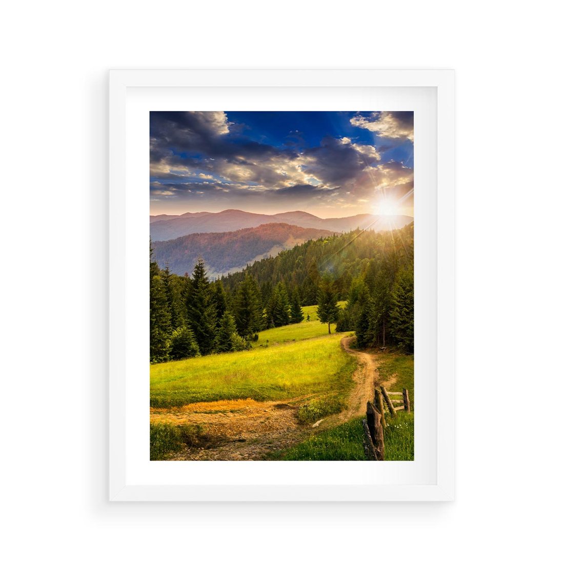- Plakat w ramie 40x50 - Zachód słońca na łące