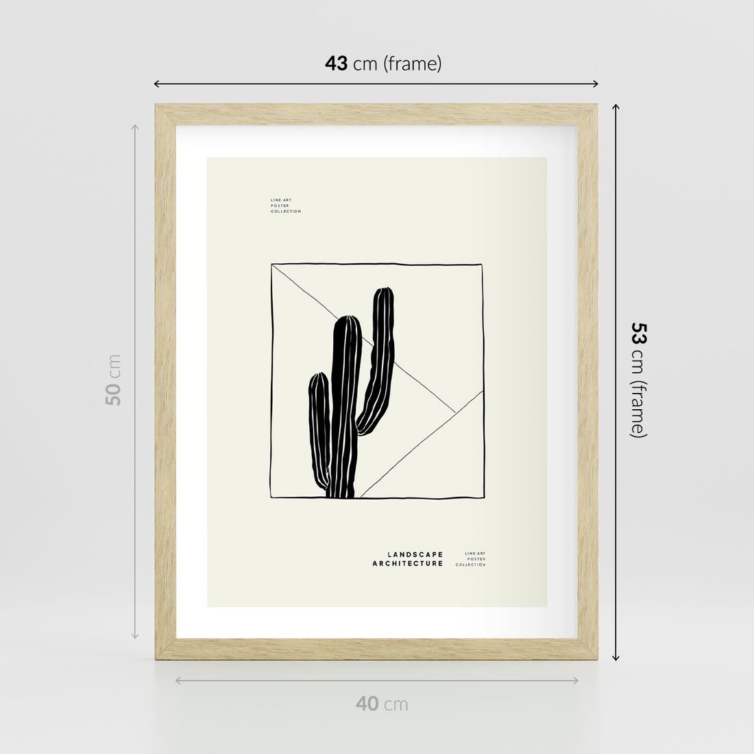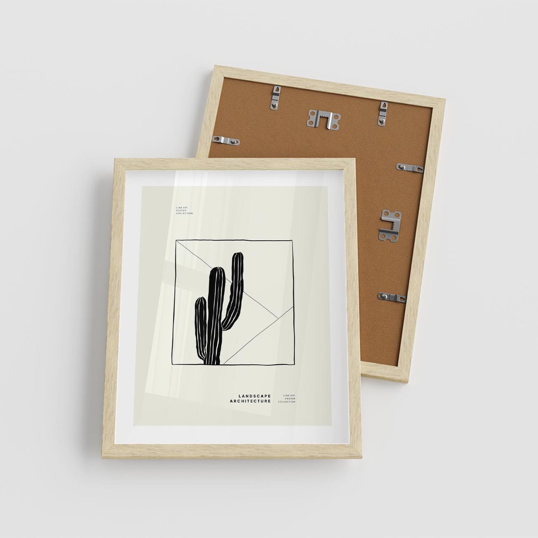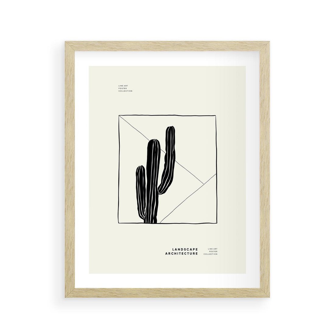 Ta nowoczesna sztuka łączy minimalistyczny styl z urokiem kaktusów, tworząc unikalny motyw roślinny. Delikatna typografia dopełnia kompozycję, przekazując spokojną i inspirującą esencję natury.