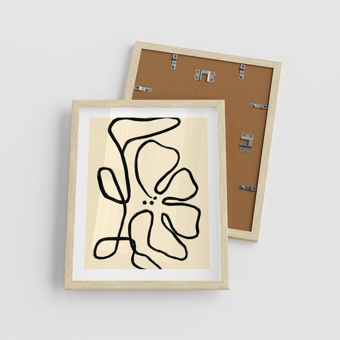 Nasza abstrakcyjna sztuka to subtelna kompozycja, przypominająca delikatny kwiat, oparta na kontrastujących czerni i bieli. W minimalistycznym stylu, każdy element ma swoje znaczenie, tworząc spokojną i elegancką całość. To dzieło sztuki oddające piękno w prostocie, doskonale wprowadzające do przestrzeni chwilę refleksji i harmonii.