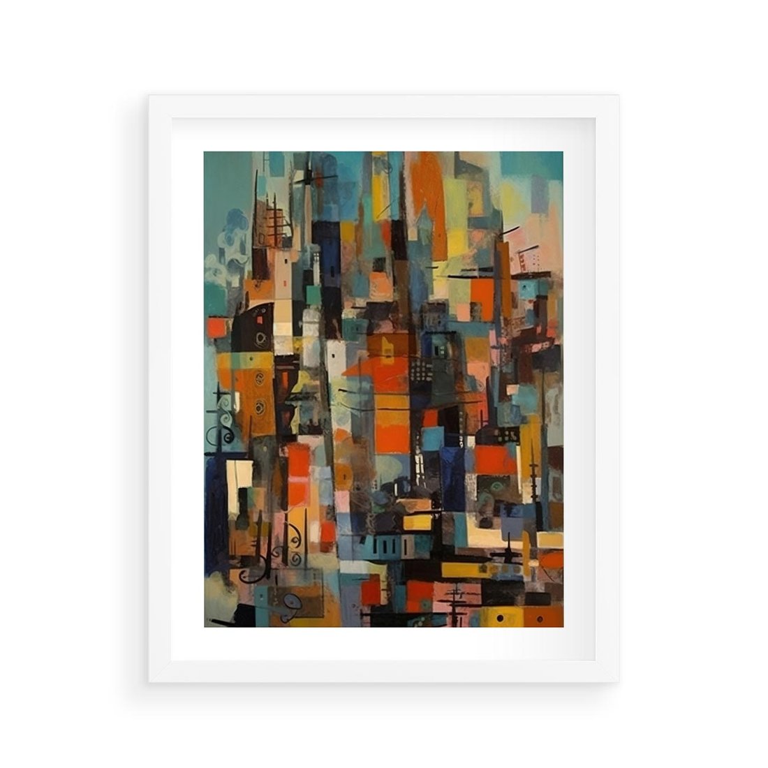 Plakat w ramie 40x50 - Zaklęte Odbicia Nienormalności - styl mid century, nowoczesna sztuka - rama biała