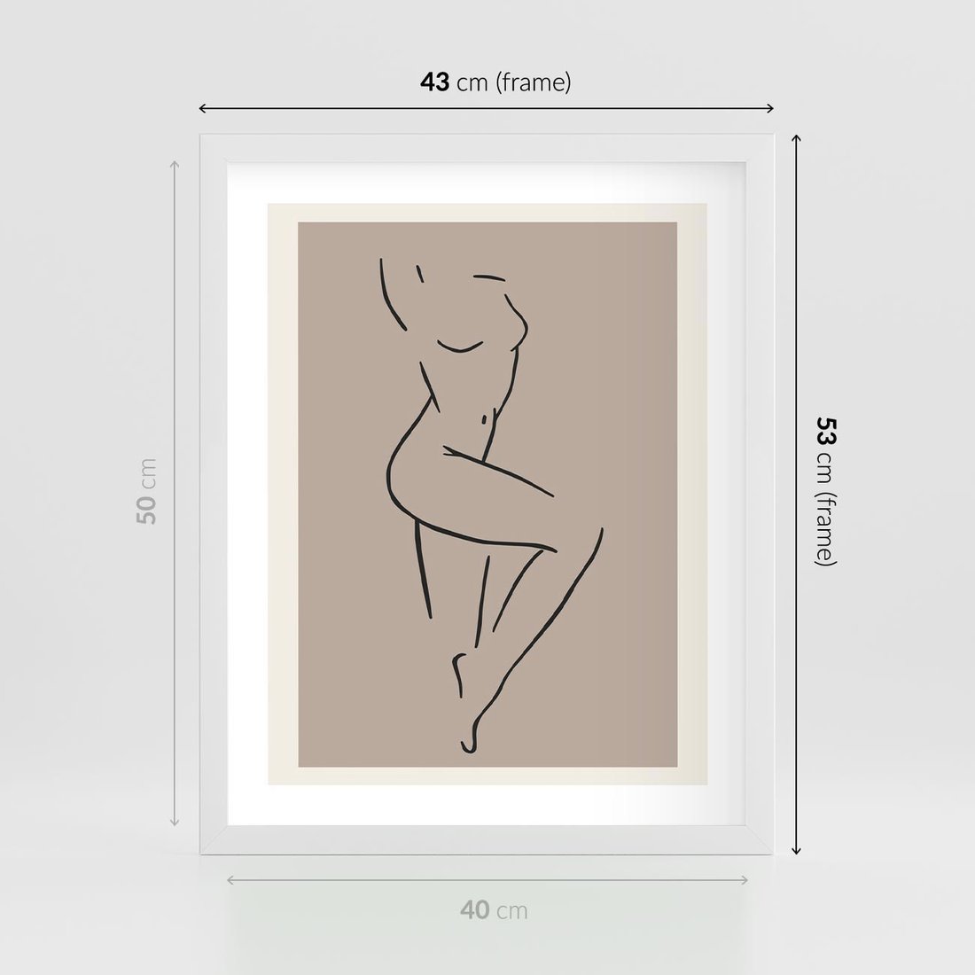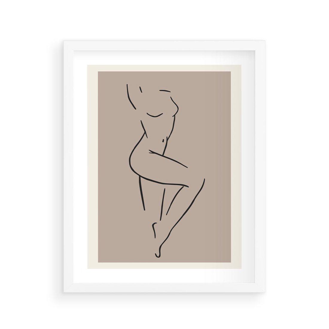 Plakat w ramie 40x50 - Zanikająca Wyobraźnia - mnimalistyczny akt, beżowa tonacja - rama biała