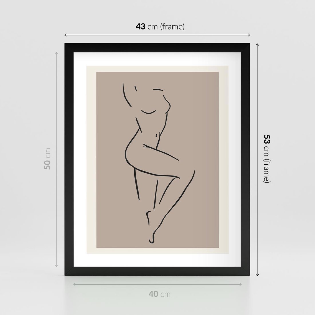 Plakat w ramie 40x50 - Zanikająca Wyobraźnia - mnimalistyczny akt, beżowa tonacja - rama czarna