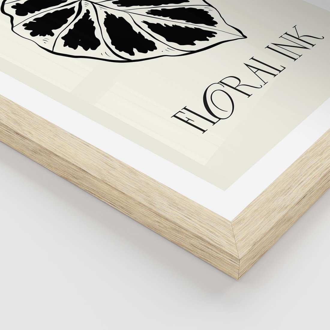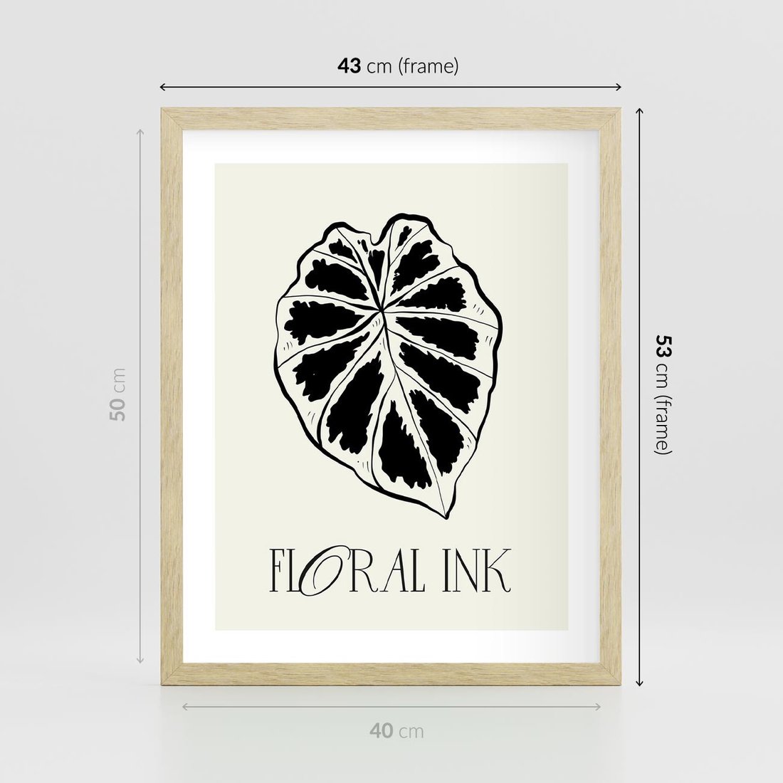 Plakat w ramie 40x50 - Zapisane na liściach wspomnienia - liść, czarny kontur na jasnym tle - rama drewno