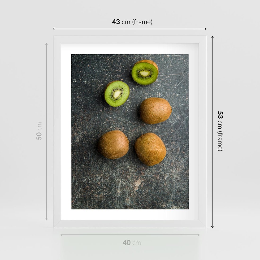 Plakat w ramie 40x50 - : Zdrowe kąski - kiwi, owoce - rama biała