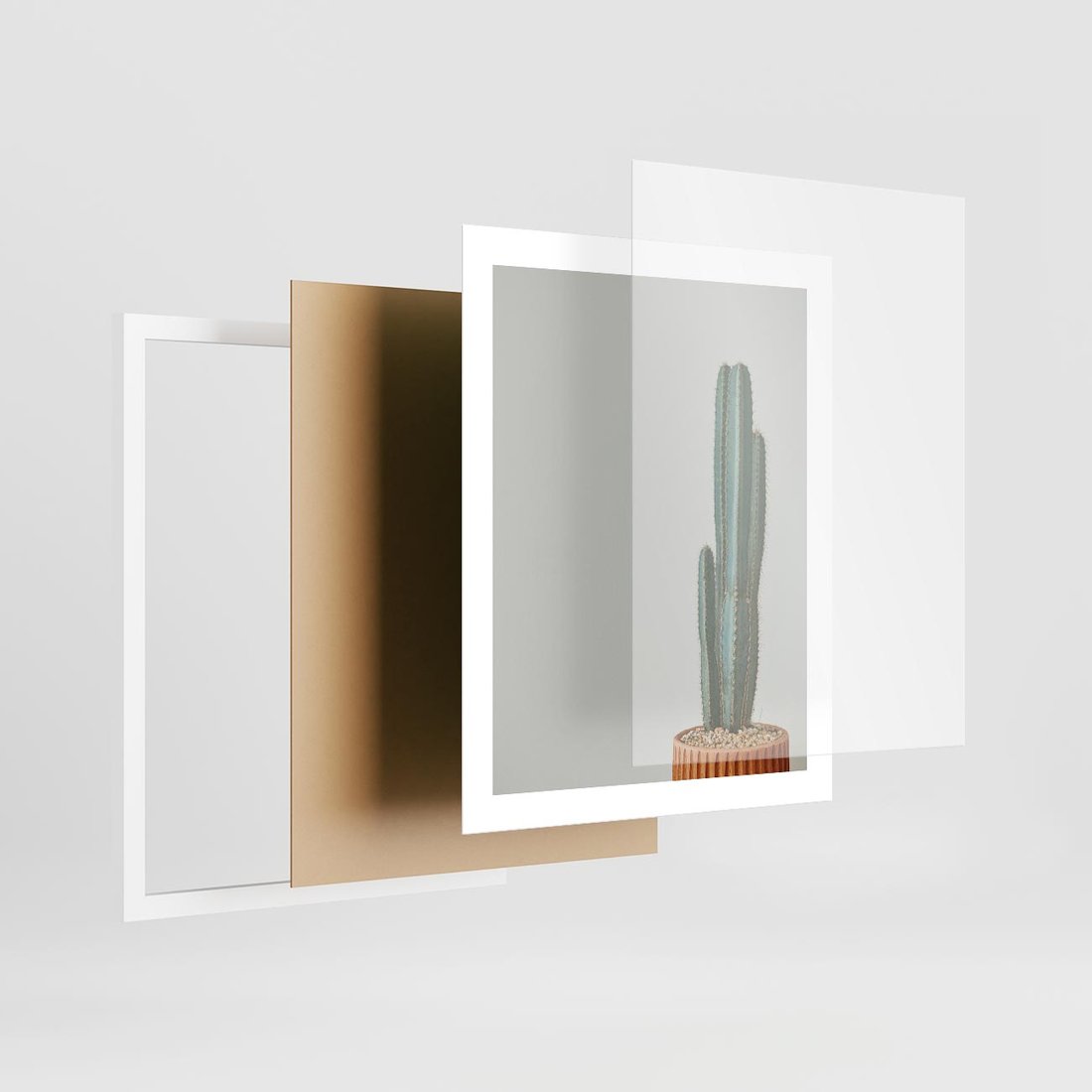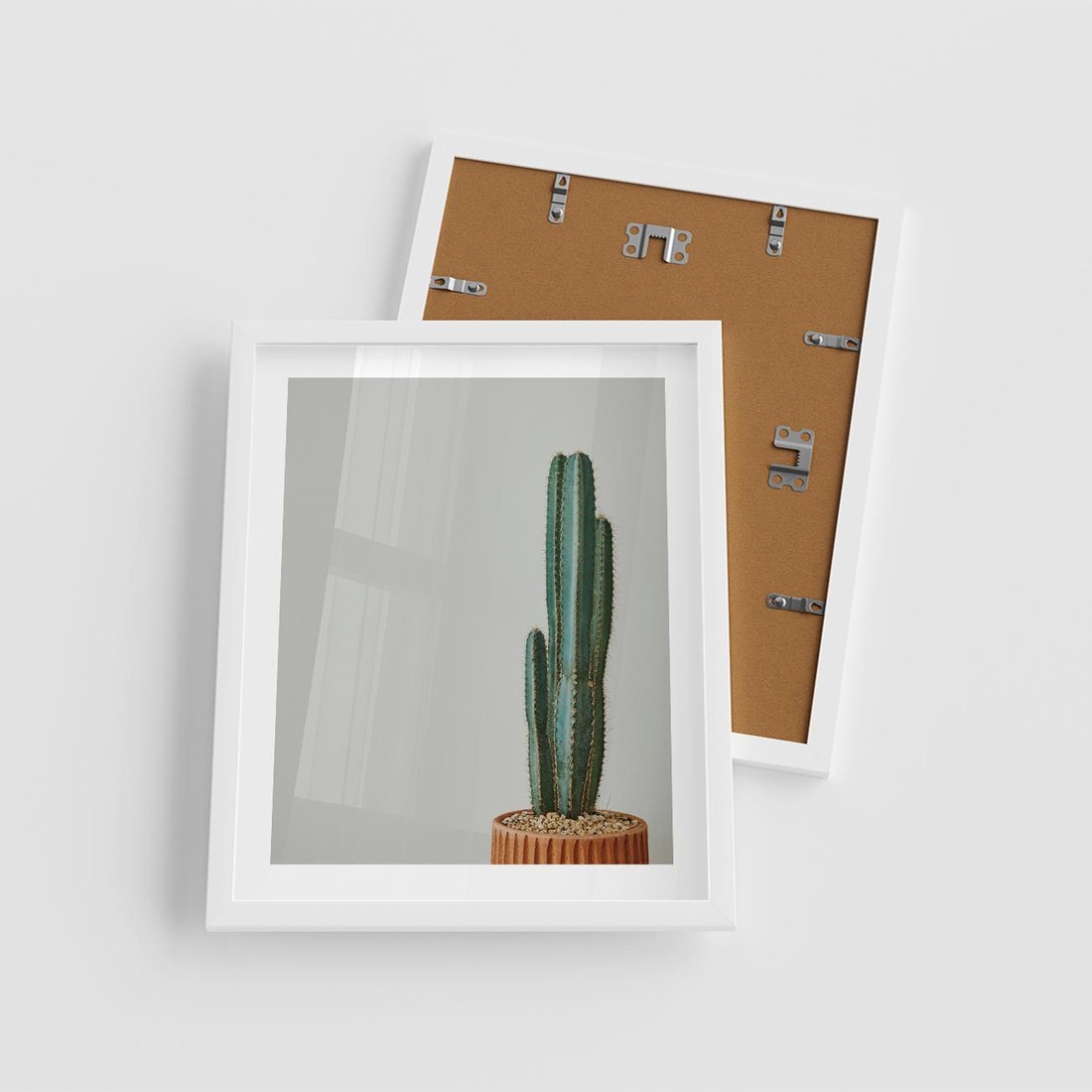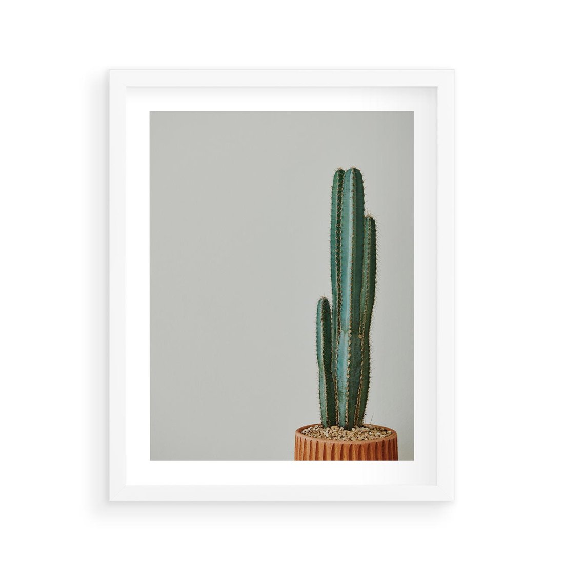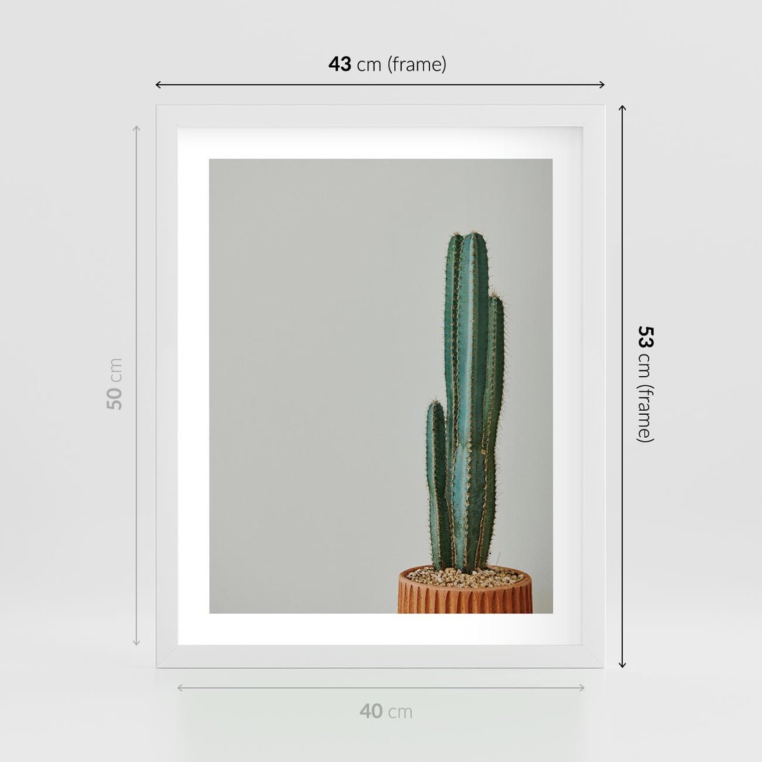 Plakat w ramie 40x50 - Zieleń i Subtelność - kaktusy, liście - rama biała