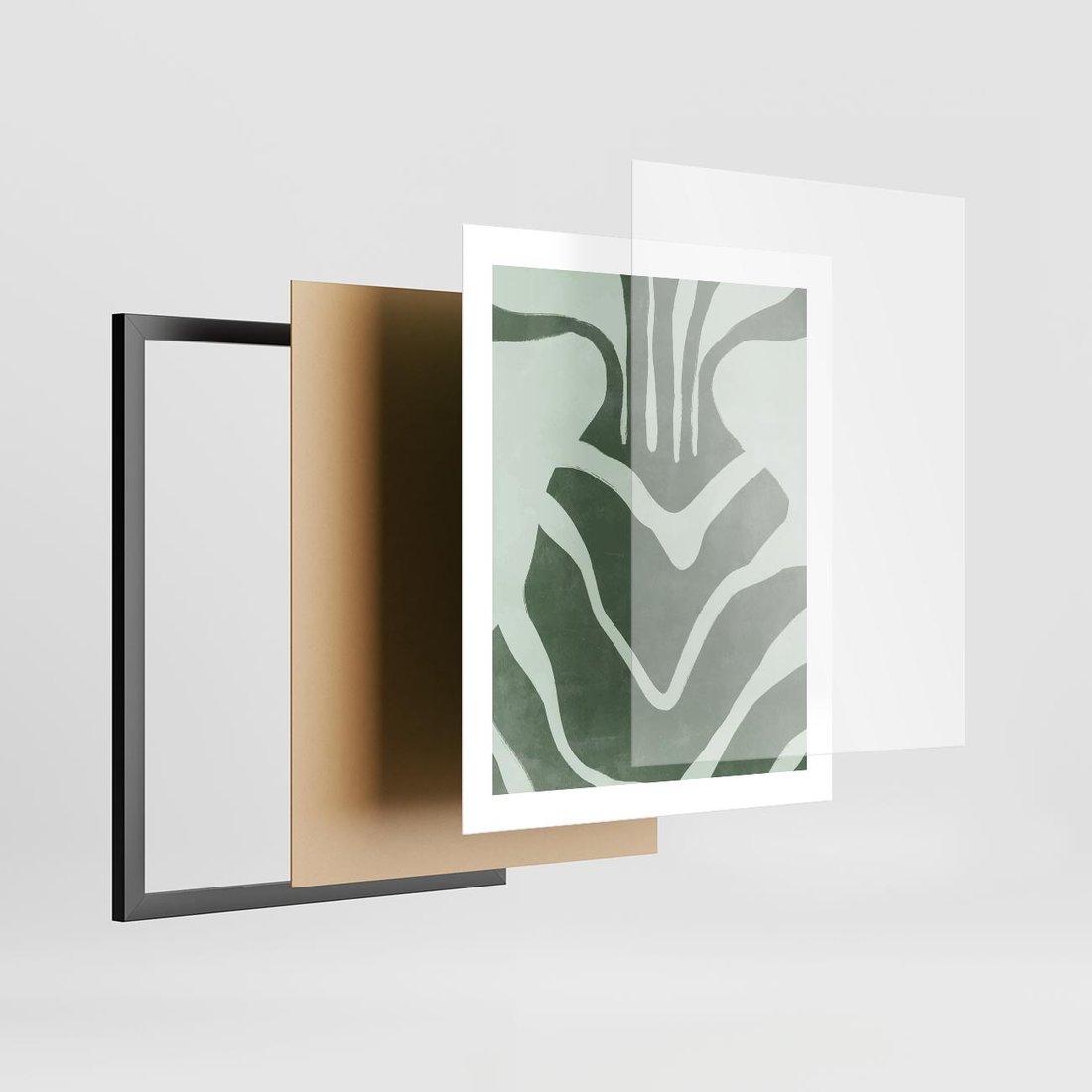 Abstrakcyjny plakat w odcieniach zieleni, z nieregularnymi i splątanymi liniami, doskonale pasuje do nowoczesnych wnętrz. Jego minimalistyczny charakter dodaje subtelności i wyjątkowości aranżacji.