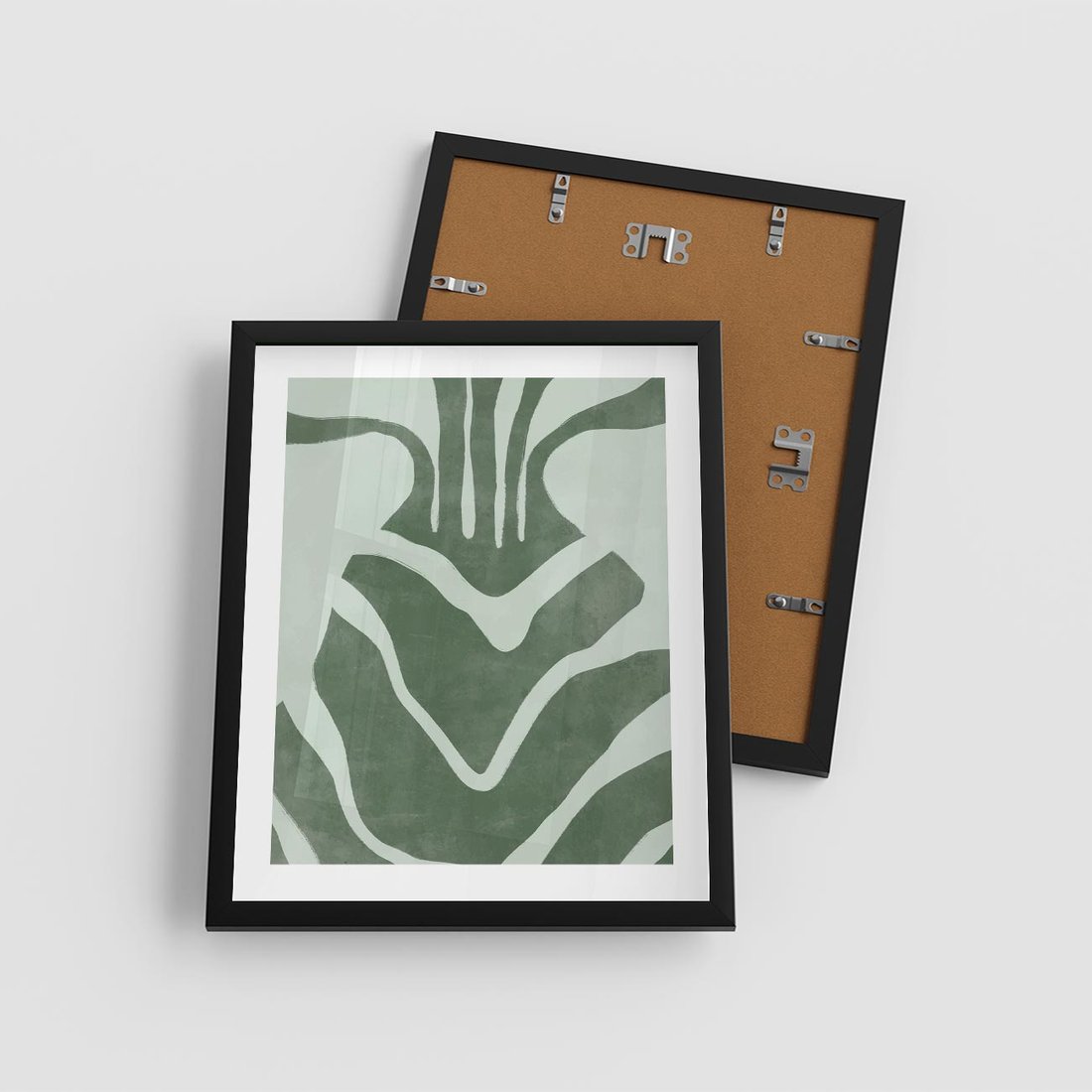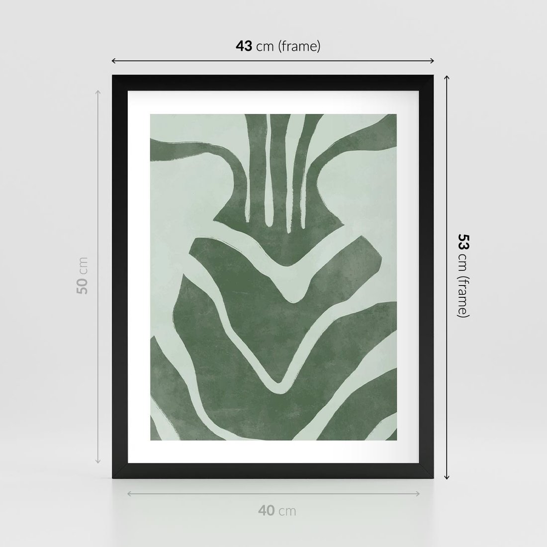 Plakat w ramie 40x50 - Zieleń Odpoczynku - zielony plakat, nieregularne splątane linie - rama czarna