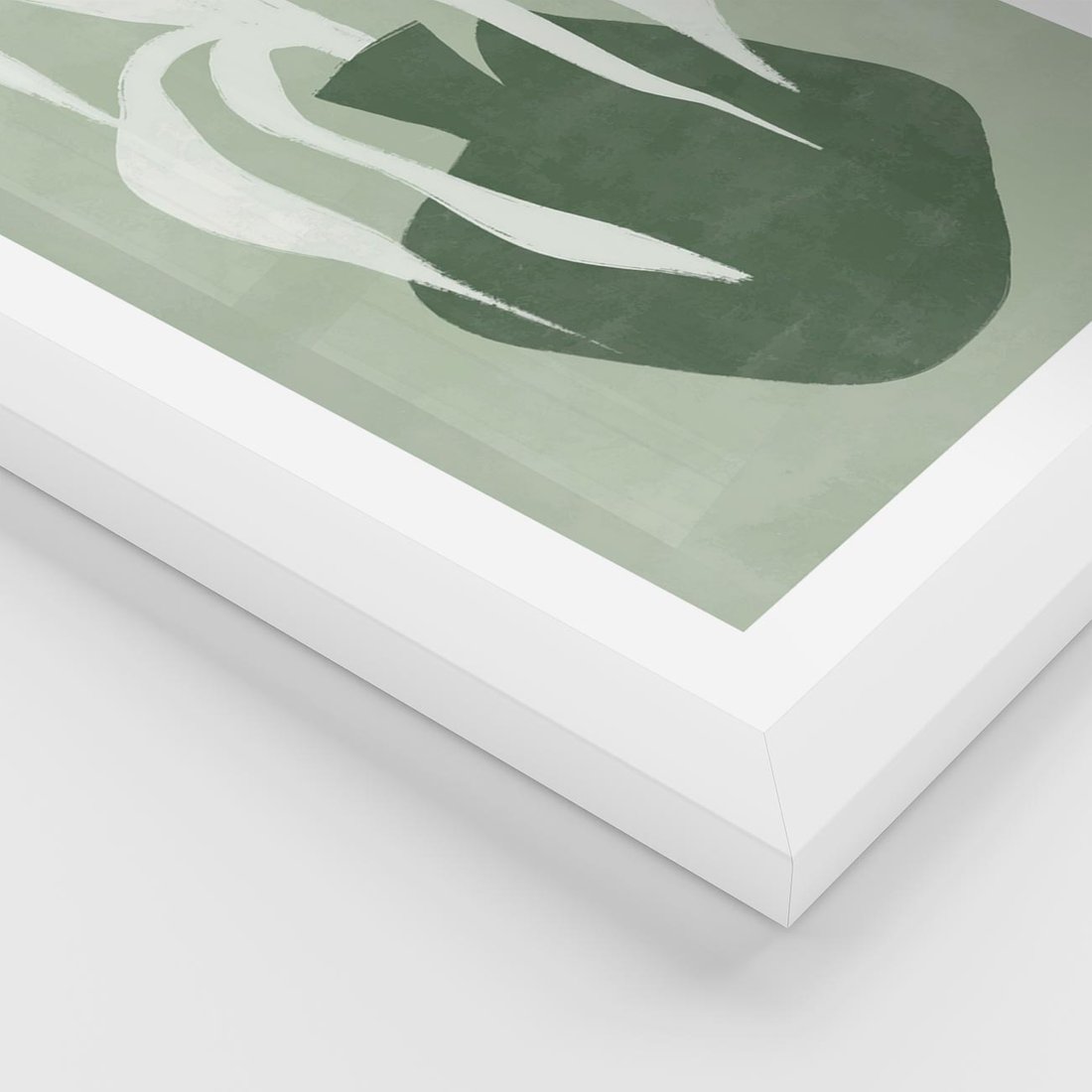 Plakat w ramie 40x50 - Zieleń Pulsującego Spokoju - zielona abstrakcja, zgaszona zieleń - rama biała