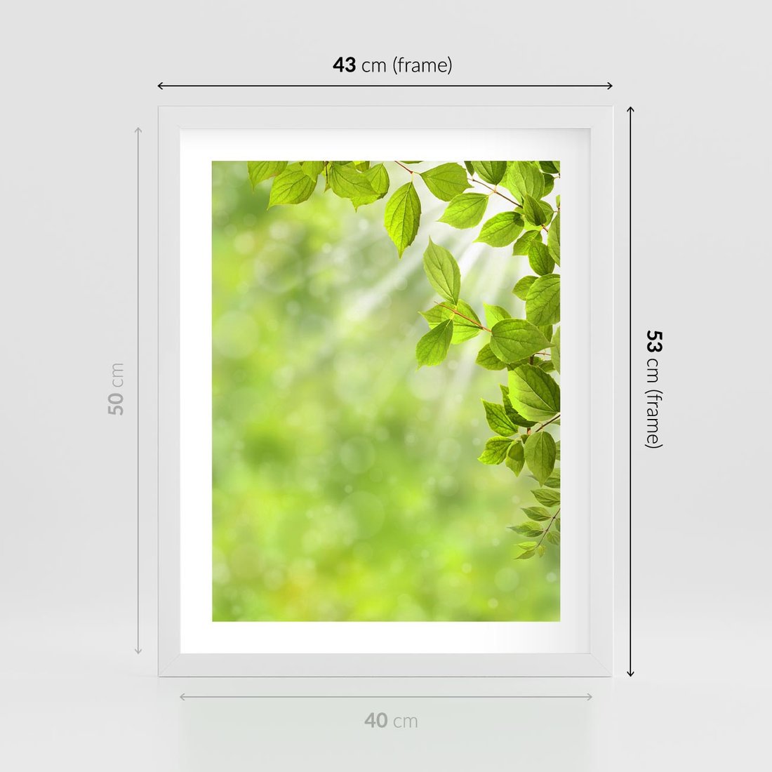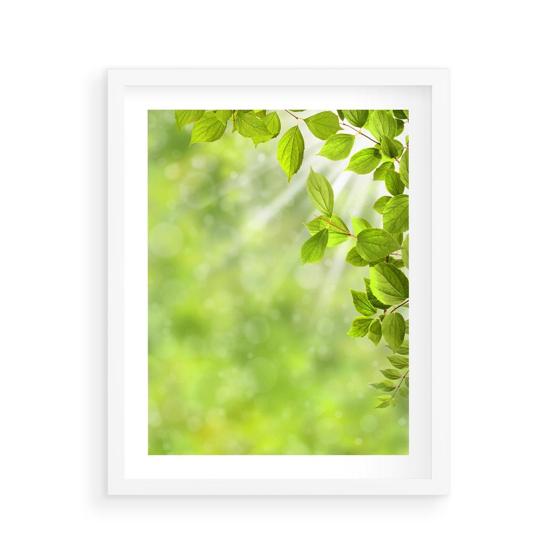 Plakat w ramie 40x50 - Zielone liście natury - liści, zieleń - rama biała
