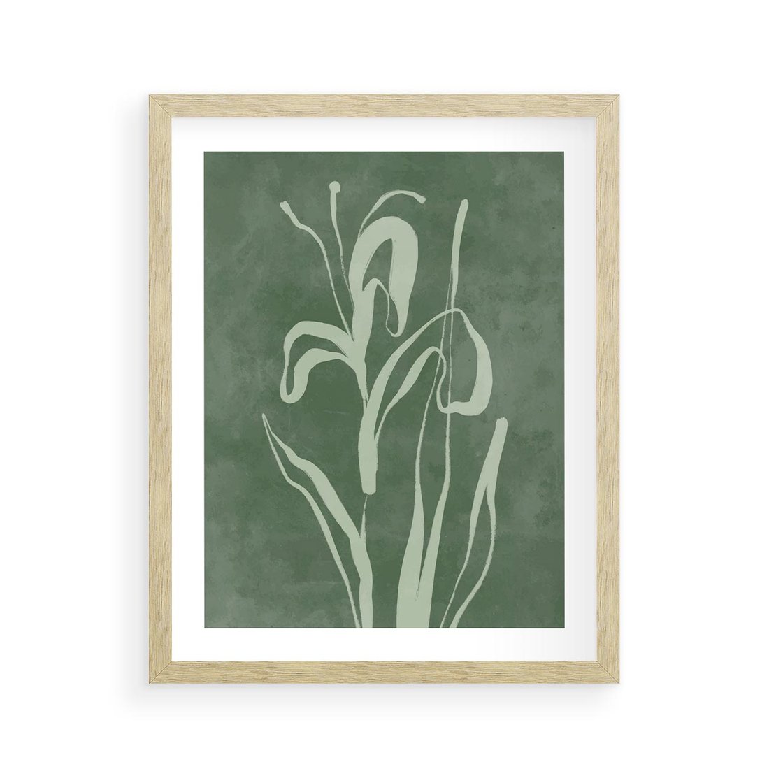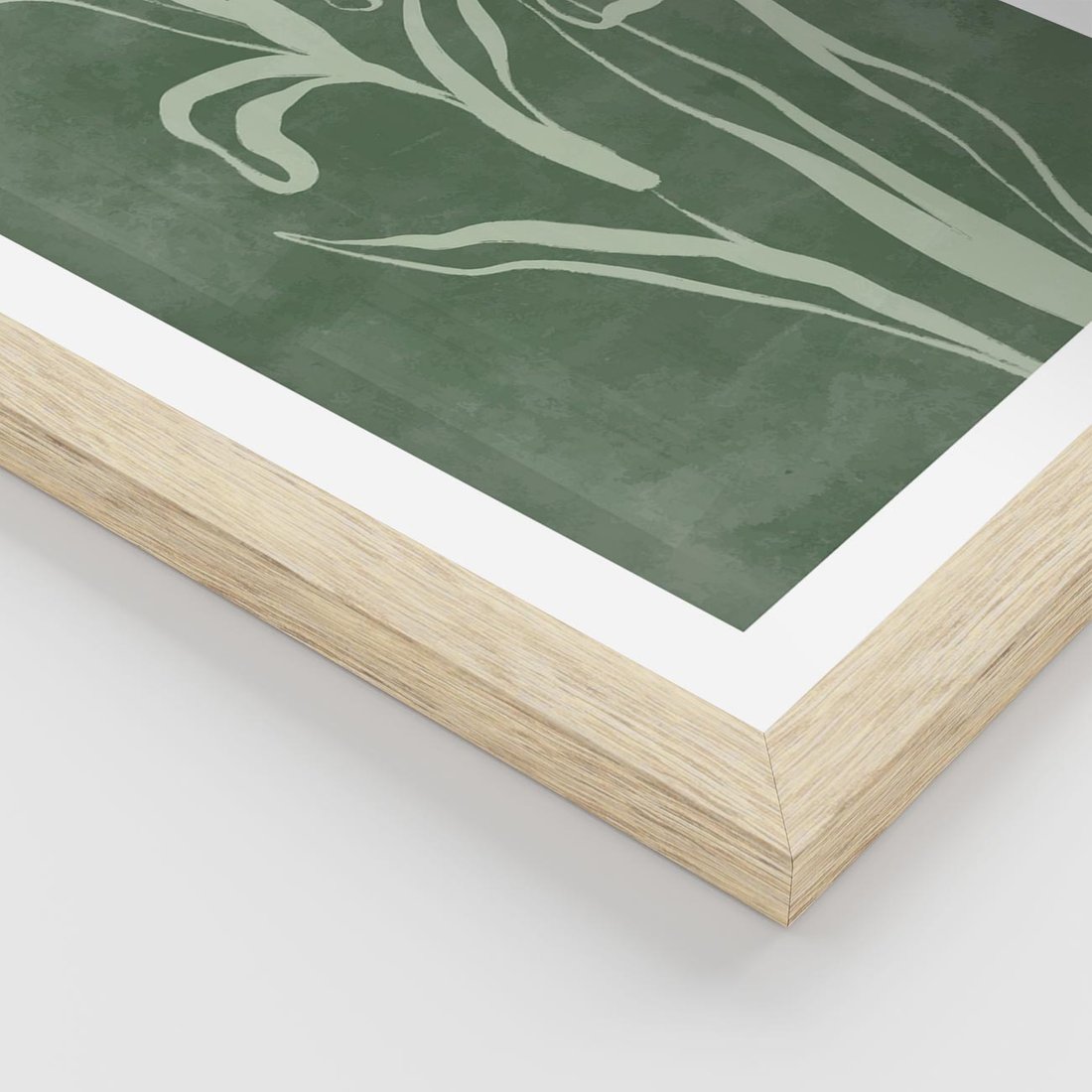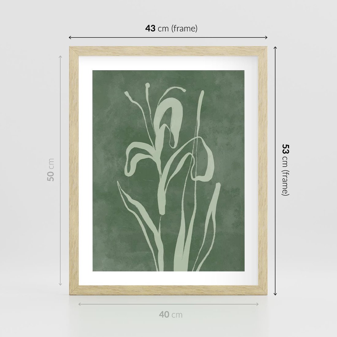 Plakat w ramie 40x50 - Zielony Oddech - zielona abstrakcja, zgaszona zieleń - rama drewno