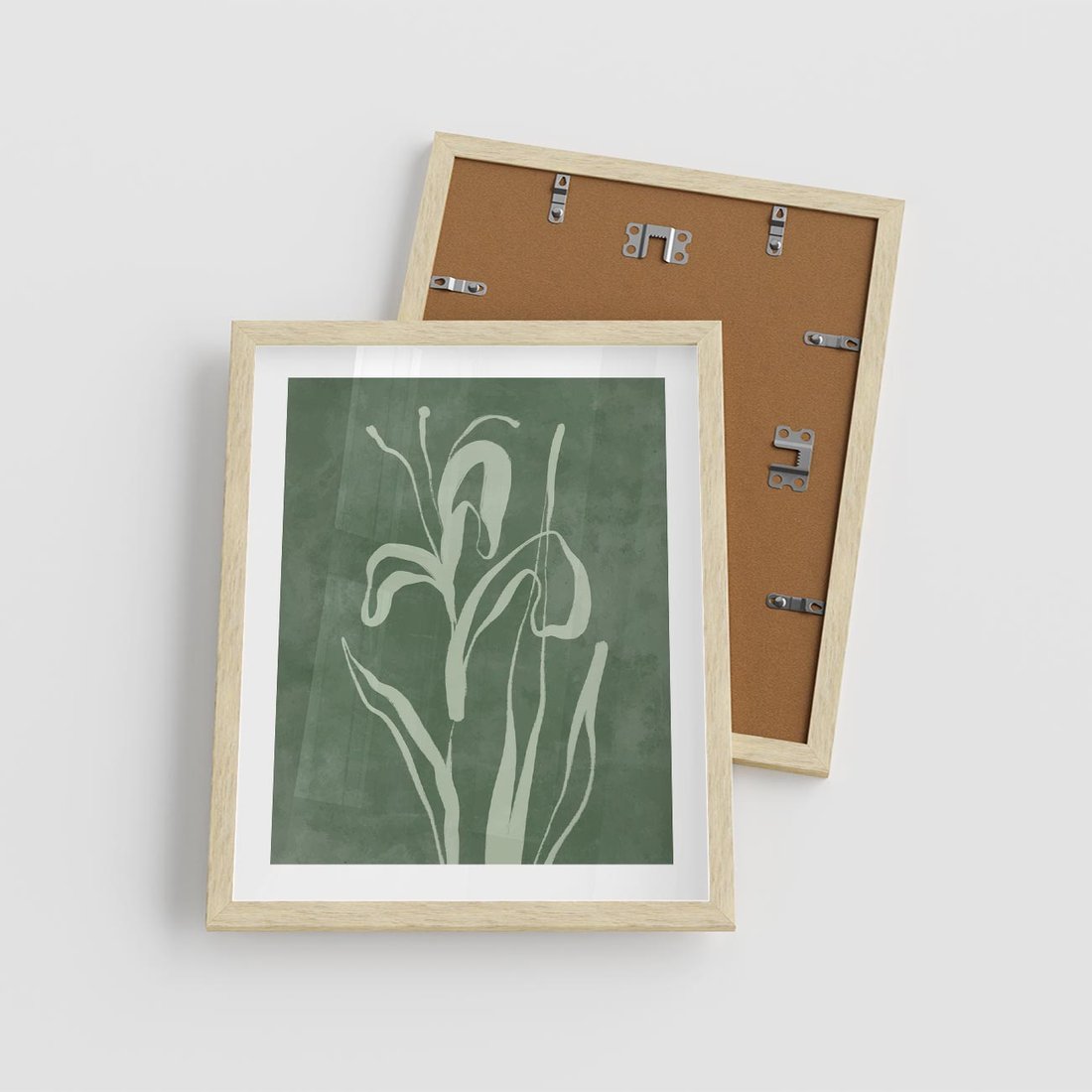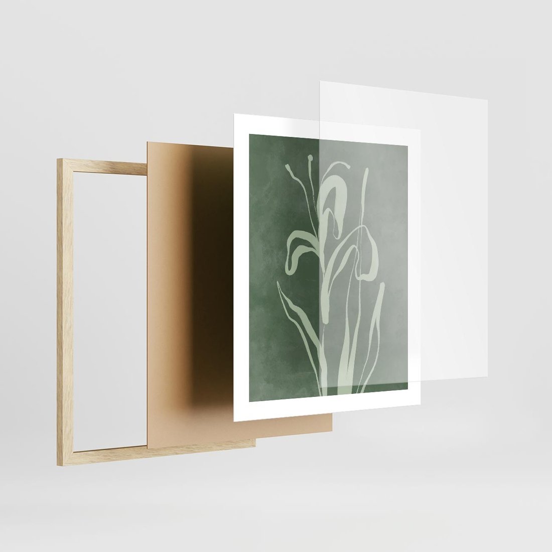 Oto zgaszona zieleń abstrakcyjnej kompozycji, idealnie wpasowująca się w estetykę skandynawskiego designu. Ten minimalistyczny plakat wniesie spokój i naturalny urok do Twojego wnętrza, tworząc harmonijną atmosferę.