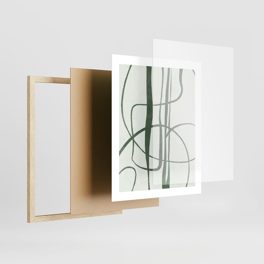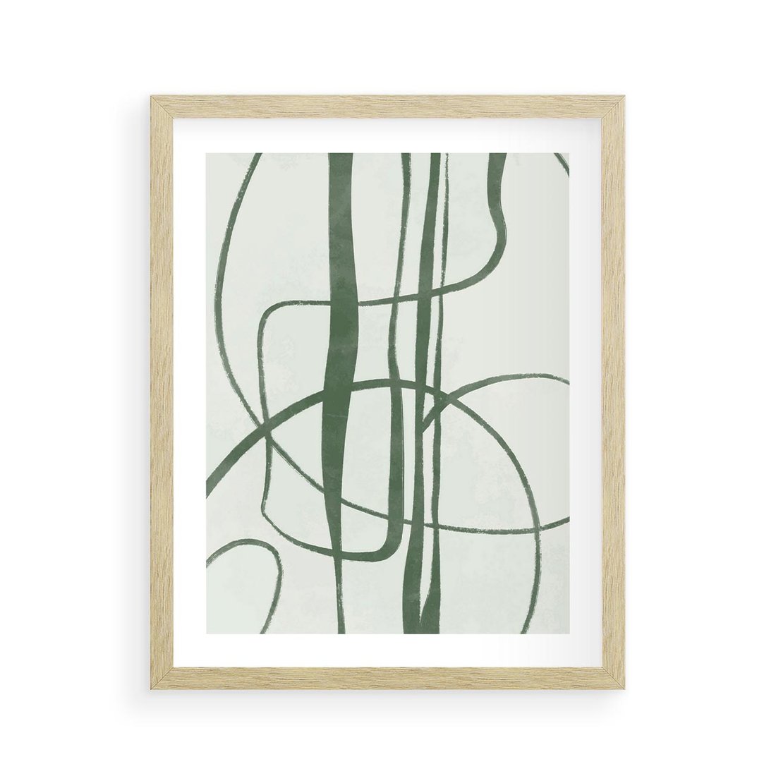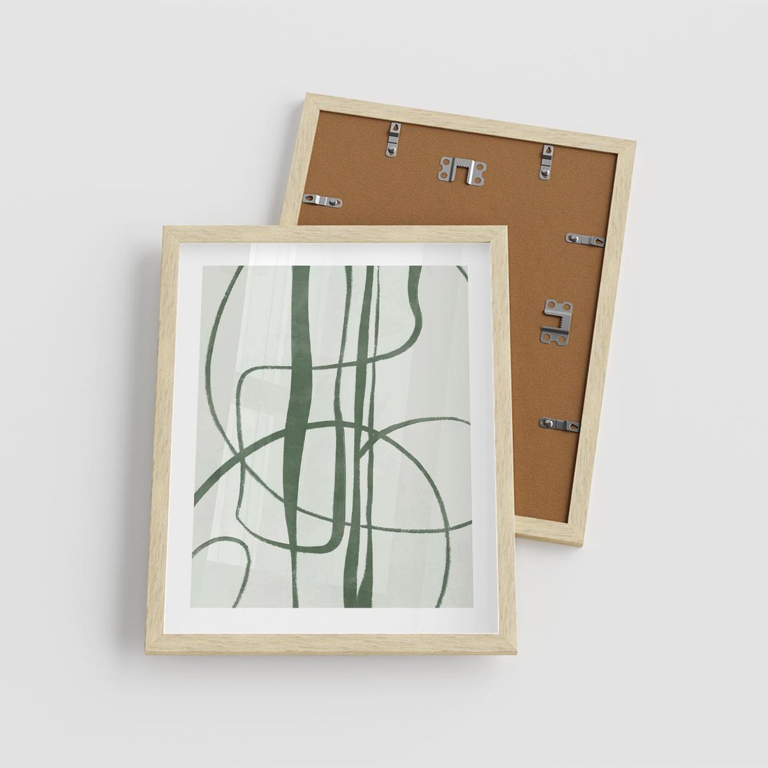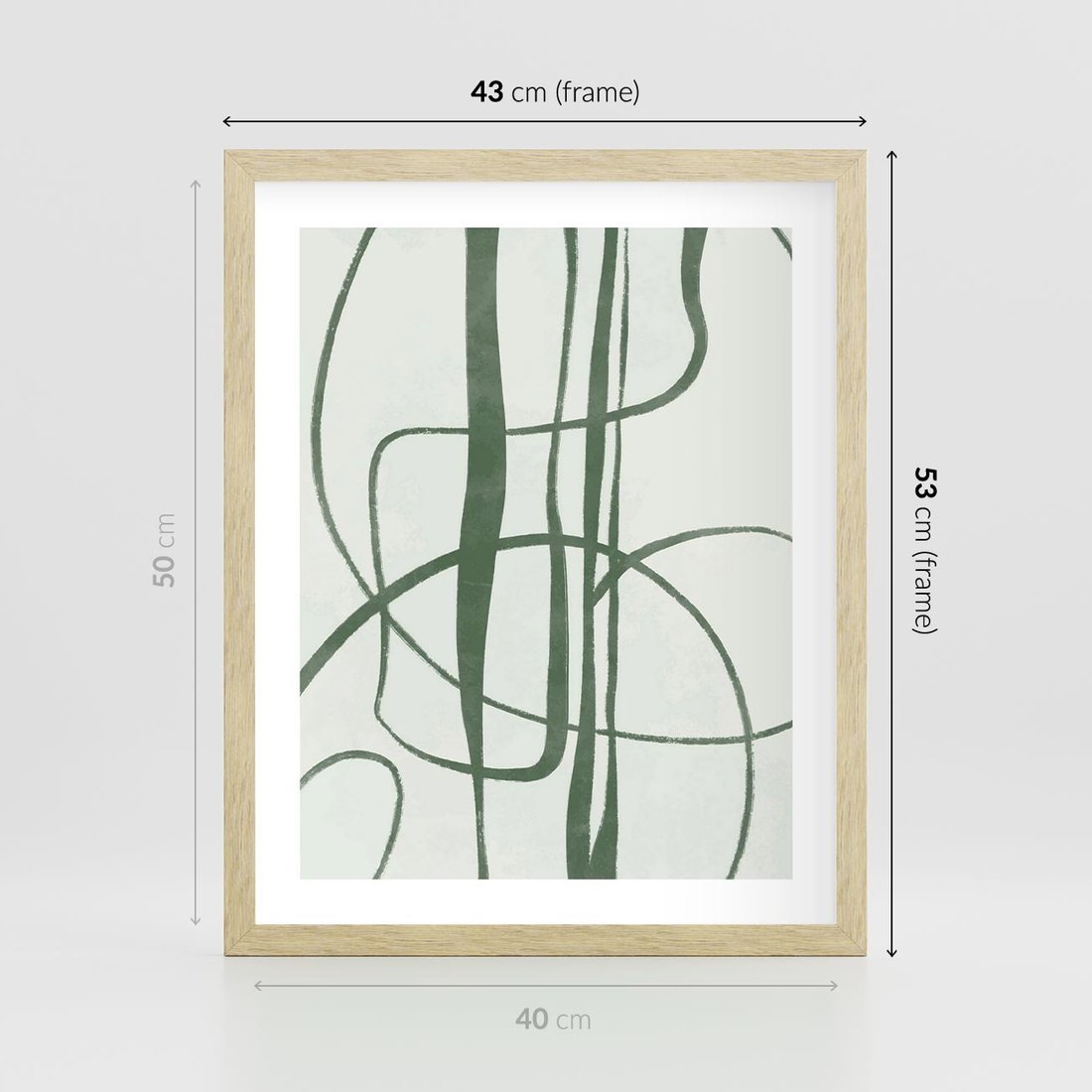 Plakat w ramie 40x50 - Zielony Spokój - zielona abstrakcja, spokojny plakat - rama drewno