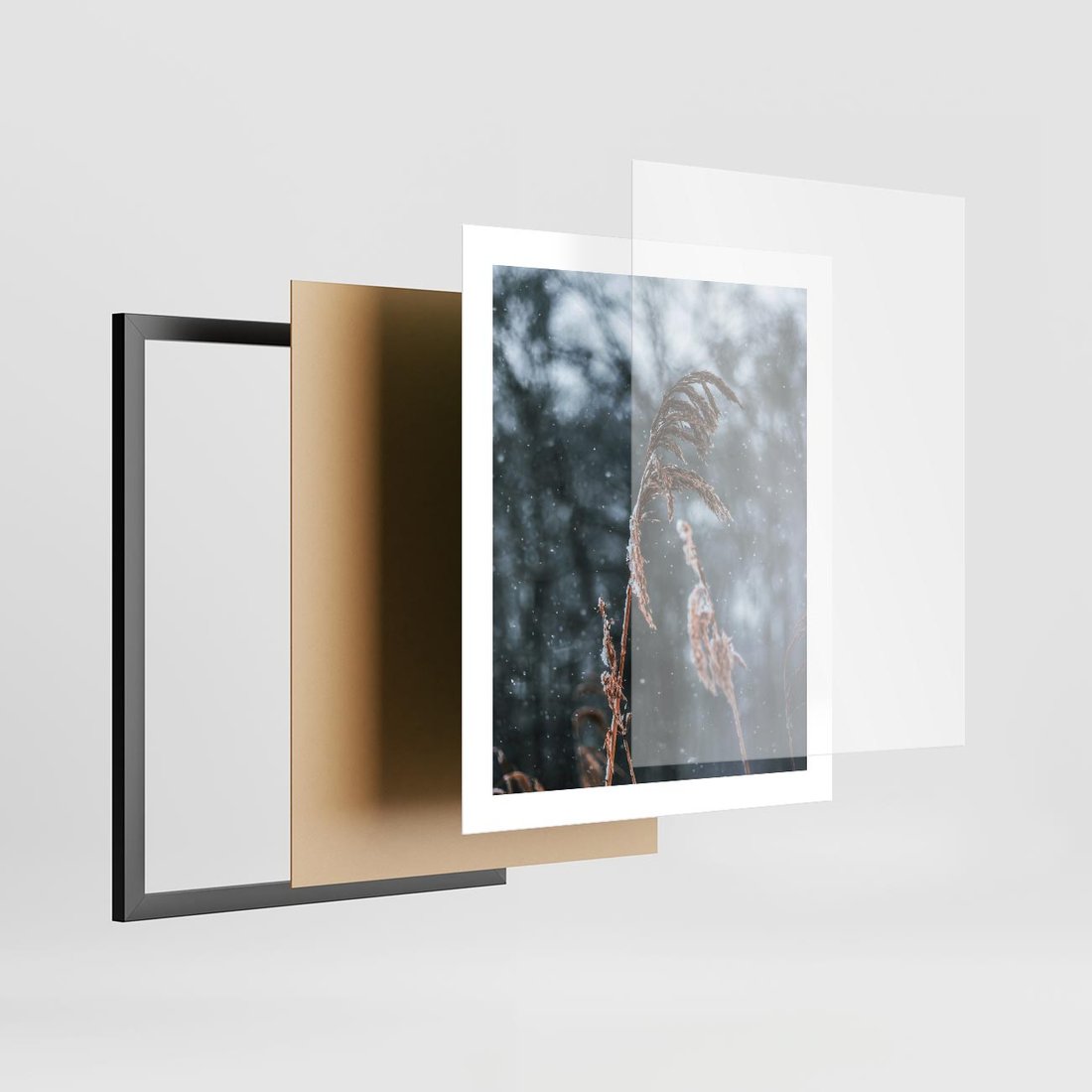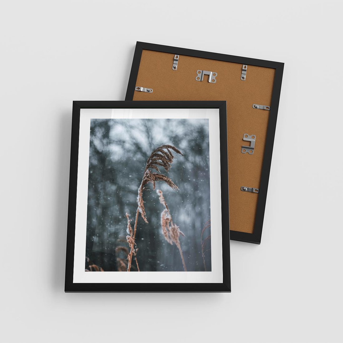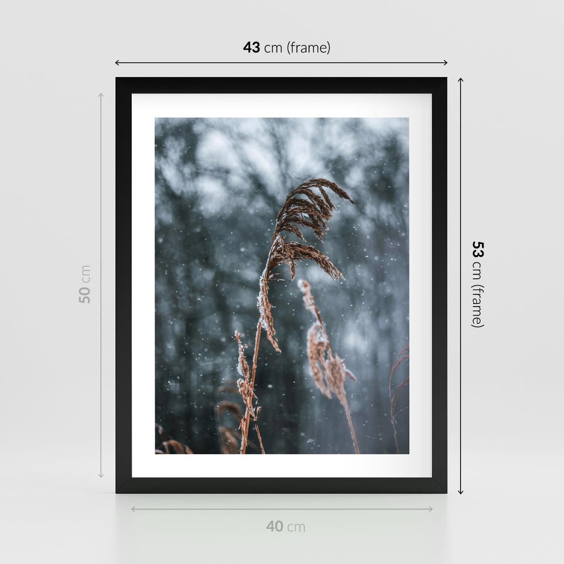 Plakat w ramie 40x50 - Zima na Łonie Natury - sucha wysoka trawa, w zimie - rama czarna