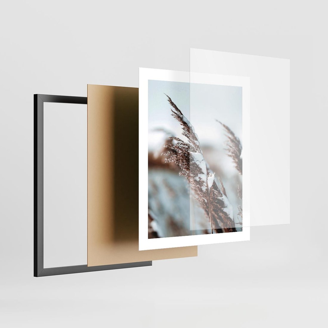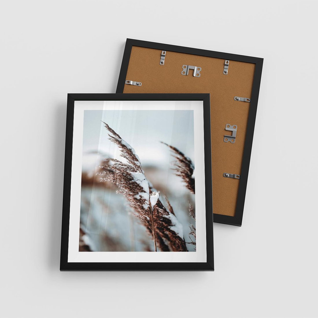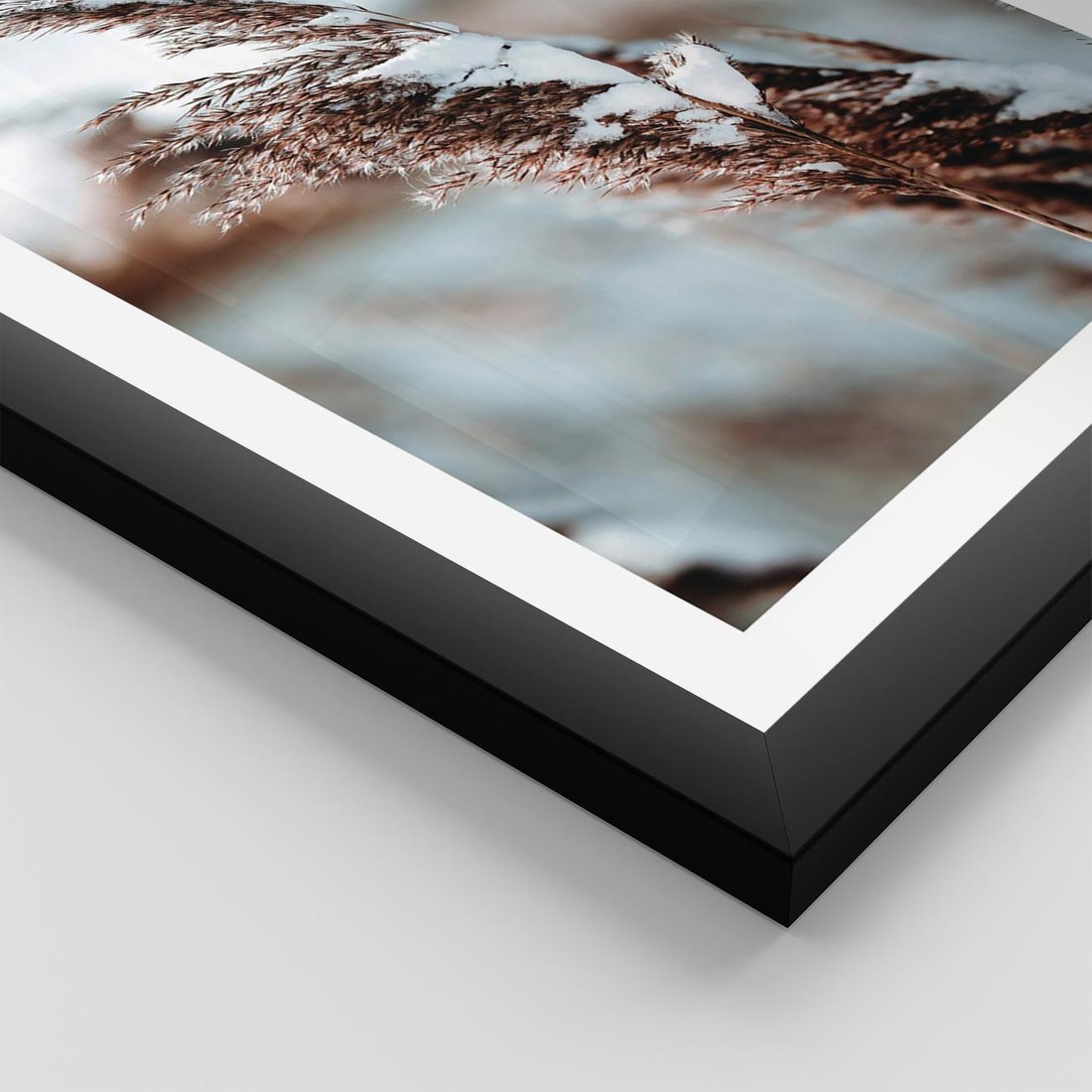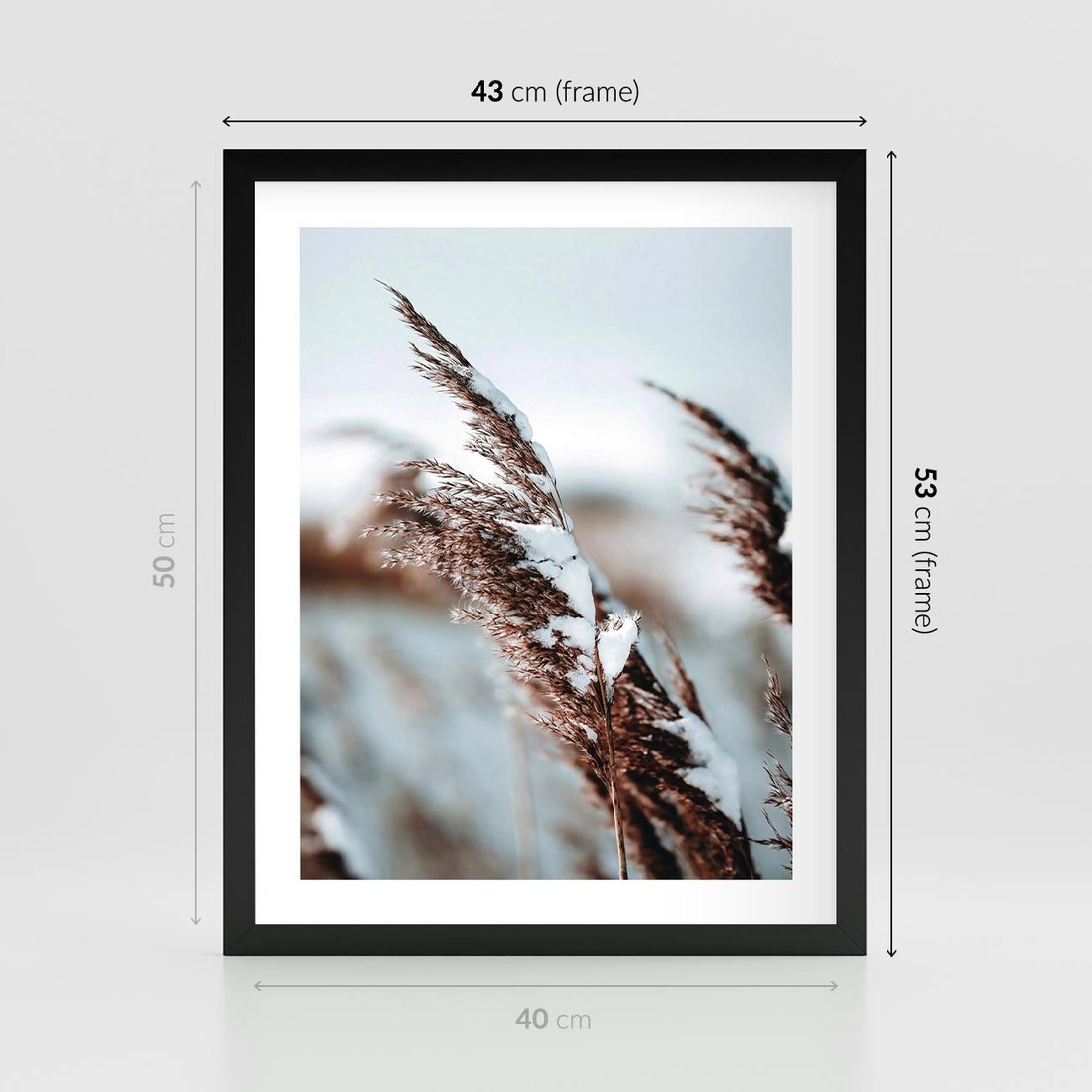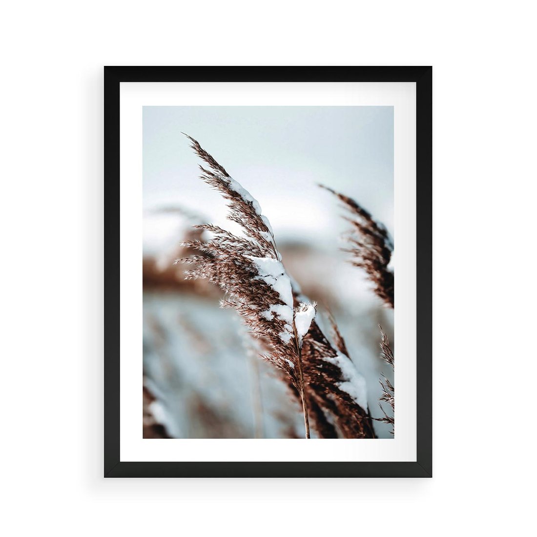 Plakat w ramie 40x50 - Zima na Suchych Trawach - suche trawy, śnieg wysokich na trawach - rama czarna