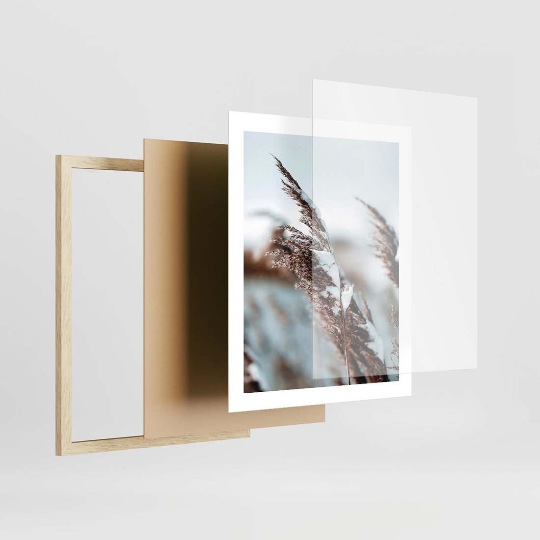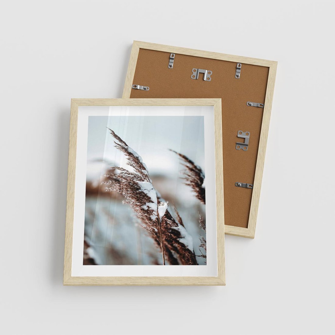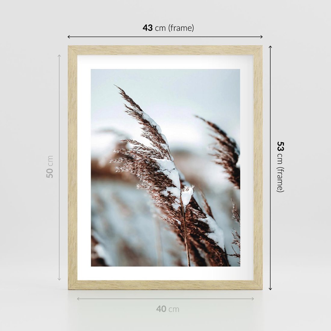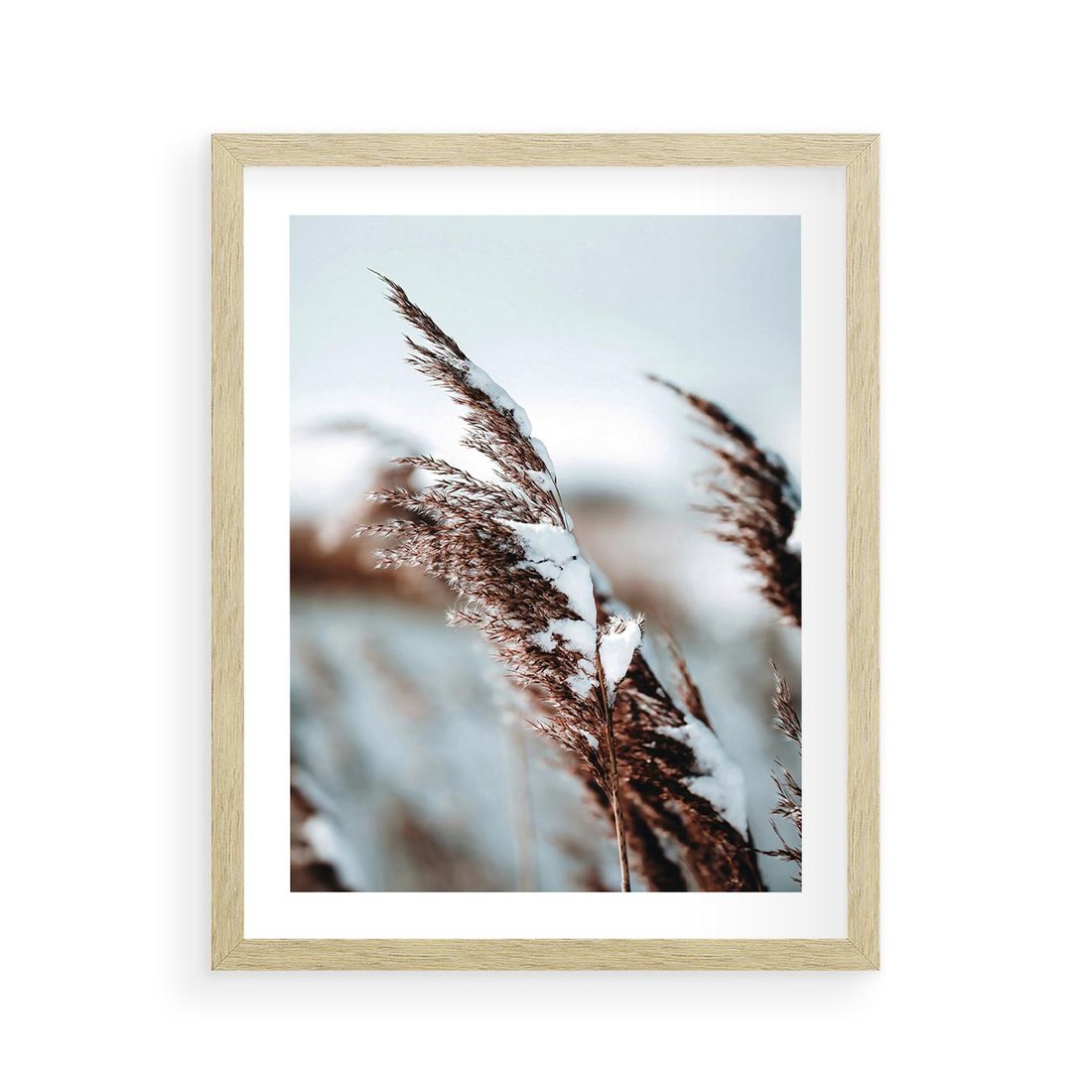 Plakat w ramie 40x50 - Zima na Suchych Trawach - suche trawy, śnieg wysokich na trawach - rama drewno