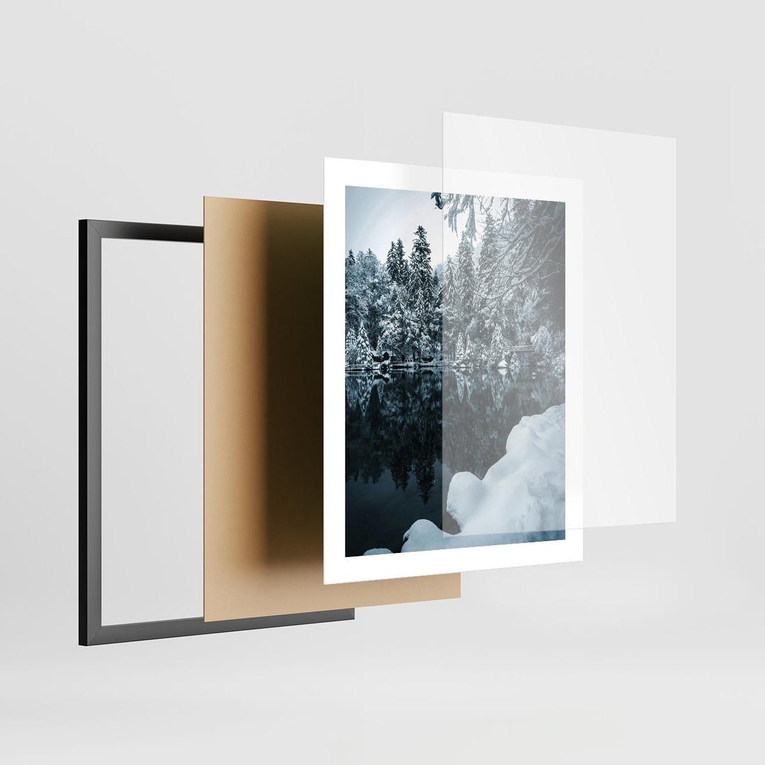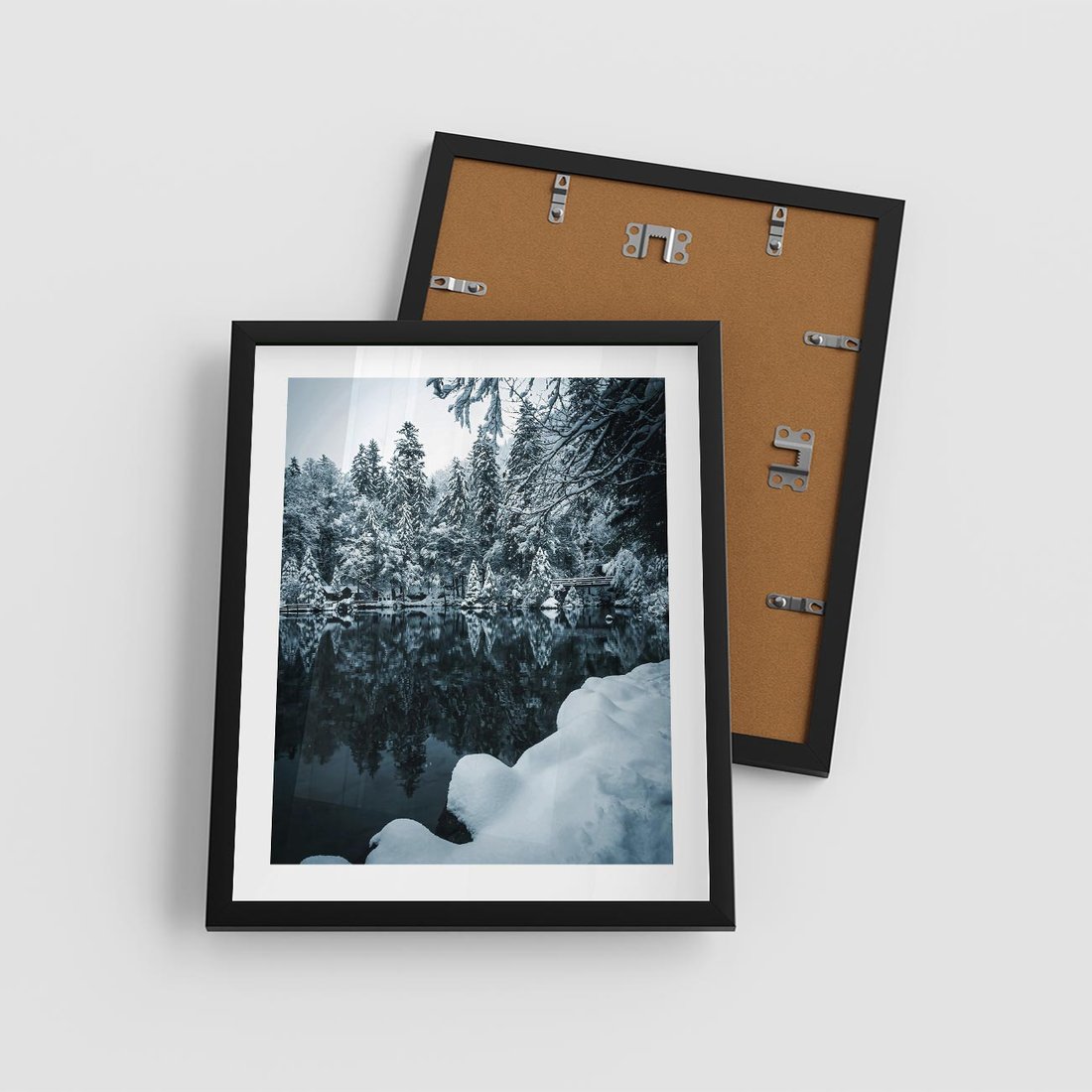 Plakat w ramie 40x50 - Zima nad Jeziorem - krajobraz zimowy, jezioro - rama czarna