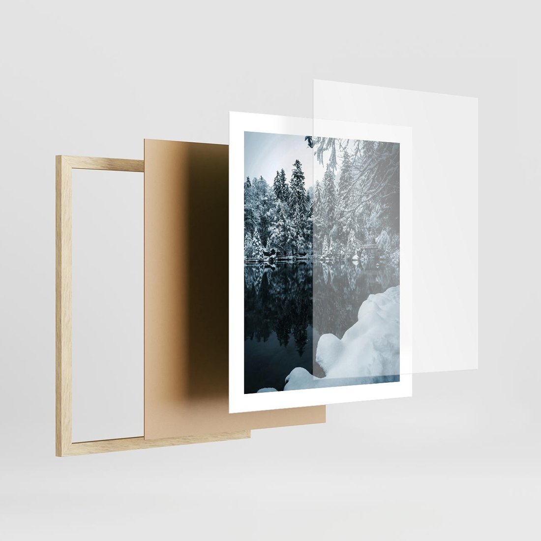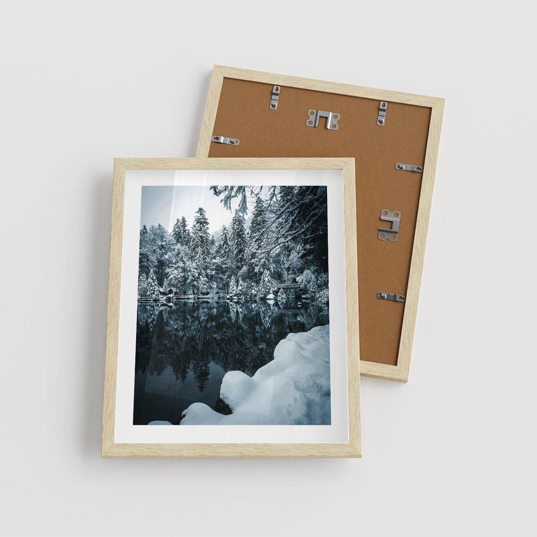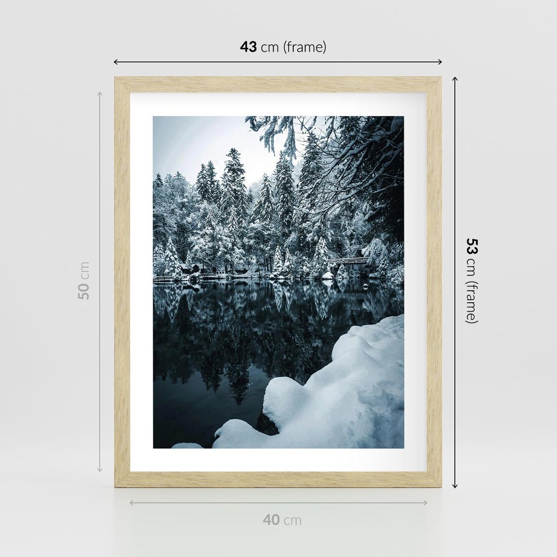 Plakat w ramie 40x50 - Zima nad Jeziorem - krajobraz zimowy, jezioro - rama drewno