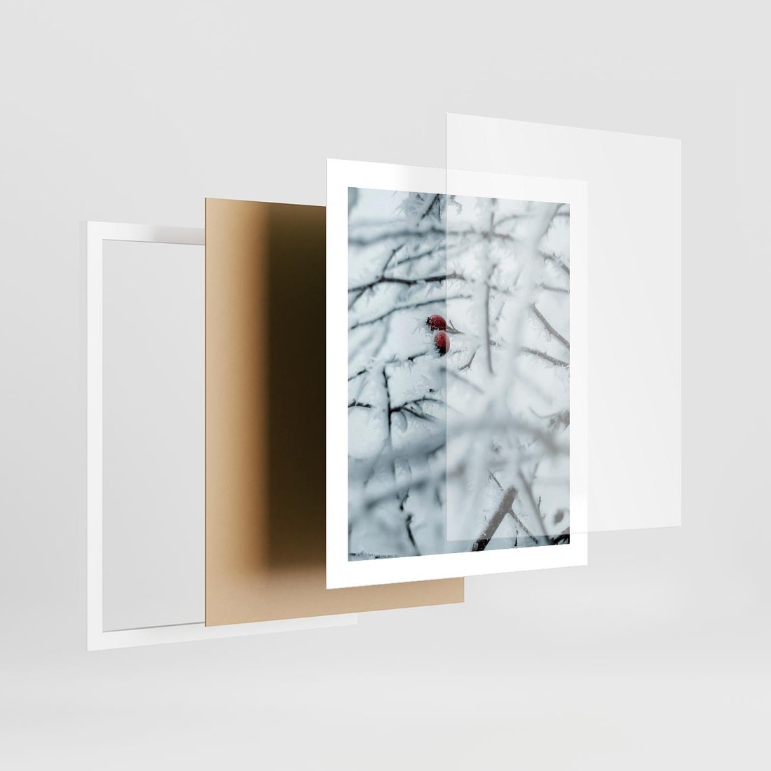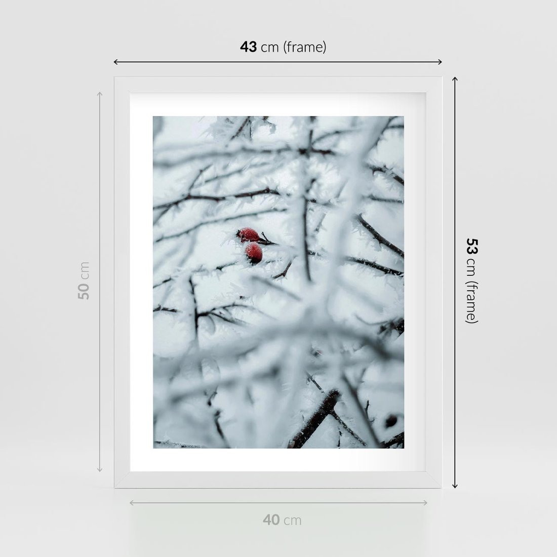 - Plakat w ramie 40x50 - Zima w Detalu: Gałęzie ze Szronem i Śniegiem