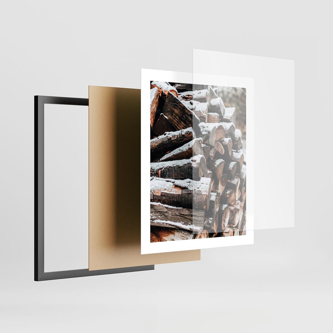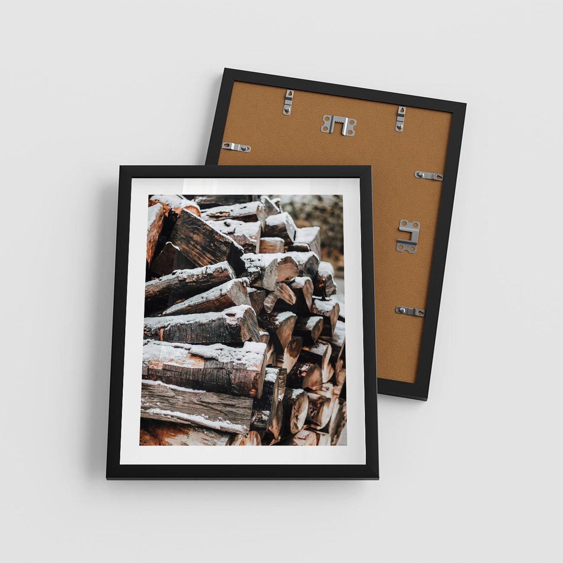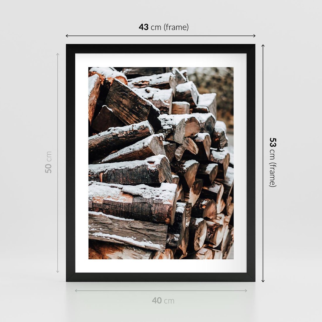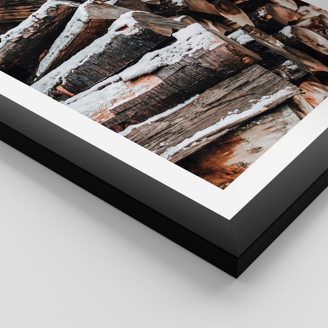 Plakat w ramie 40x50 - Zimowa Drewniana Idylla - drewno, kłody - rama czarna