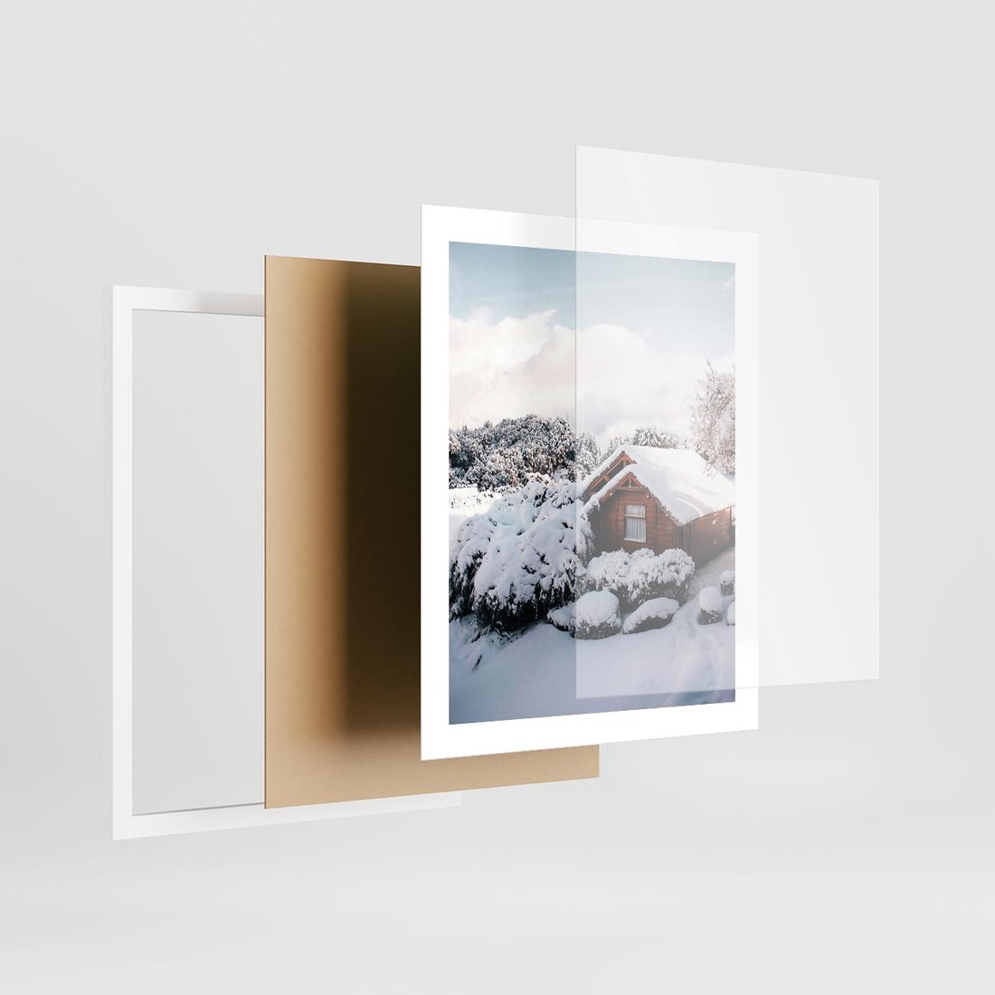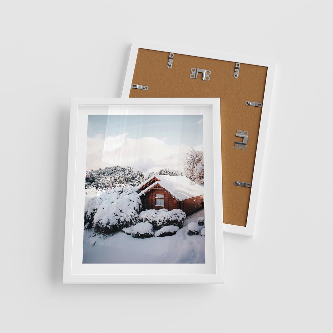 Plakat w ramie 40x50 - Zimowa Idylla w Górach - zima w górach, ośnieżone góry - rama biała