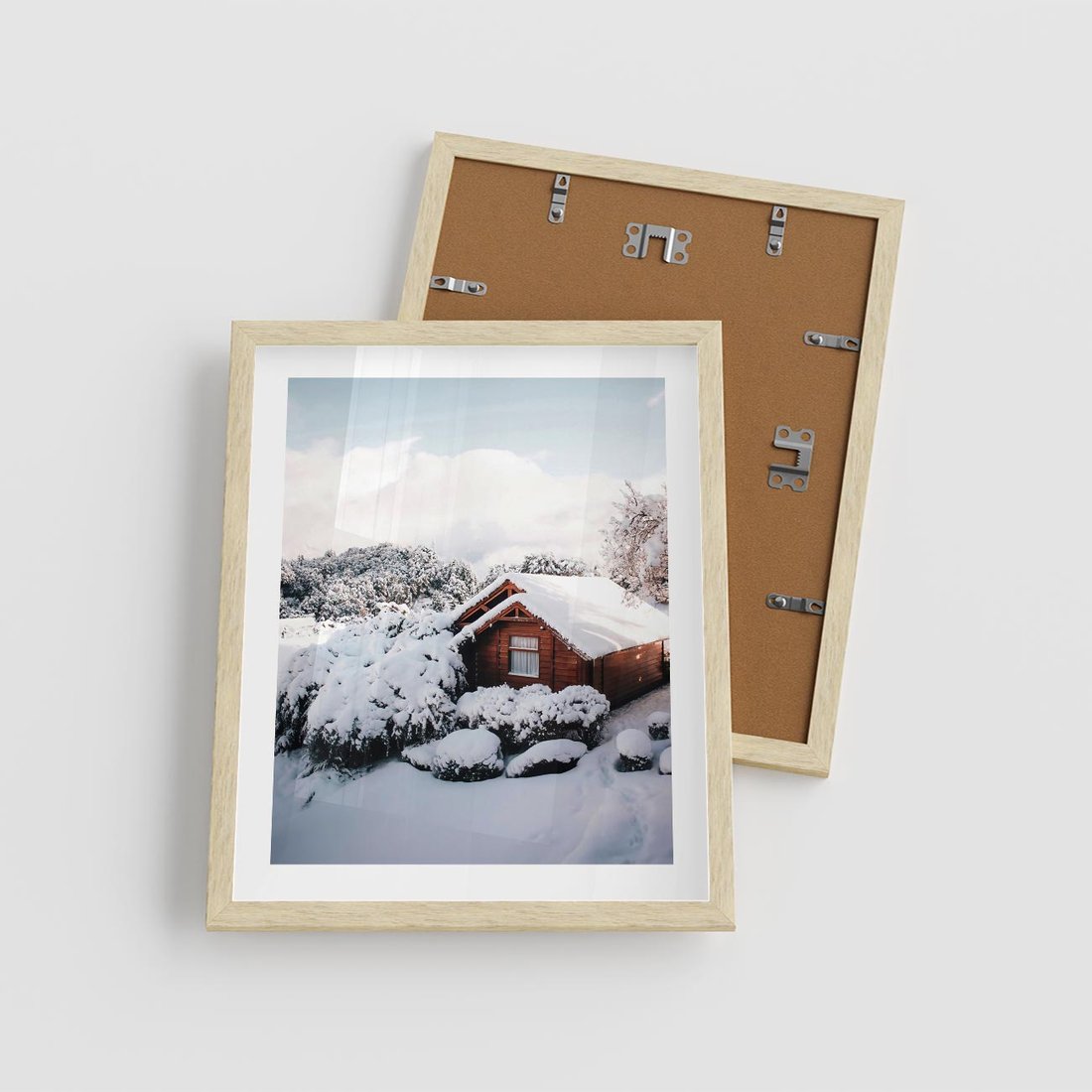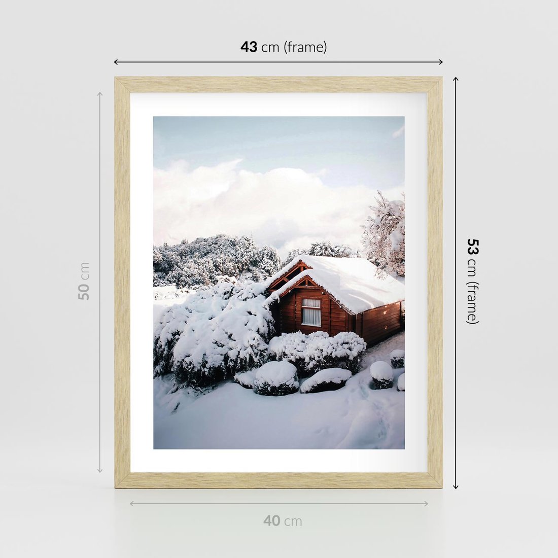 Plakat w ramie 40x50 - Zimowa Idylla w Górach - zima w górach, ośnieżone góry - rama drewno