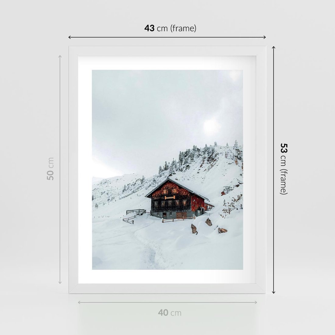 Plakat w ramie 40x50 - Zimowa Magia - domek, śnieg - rama biała