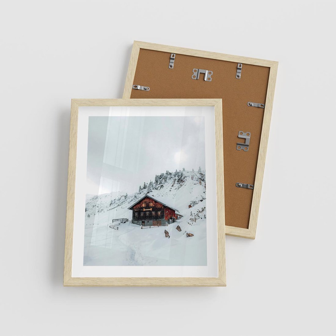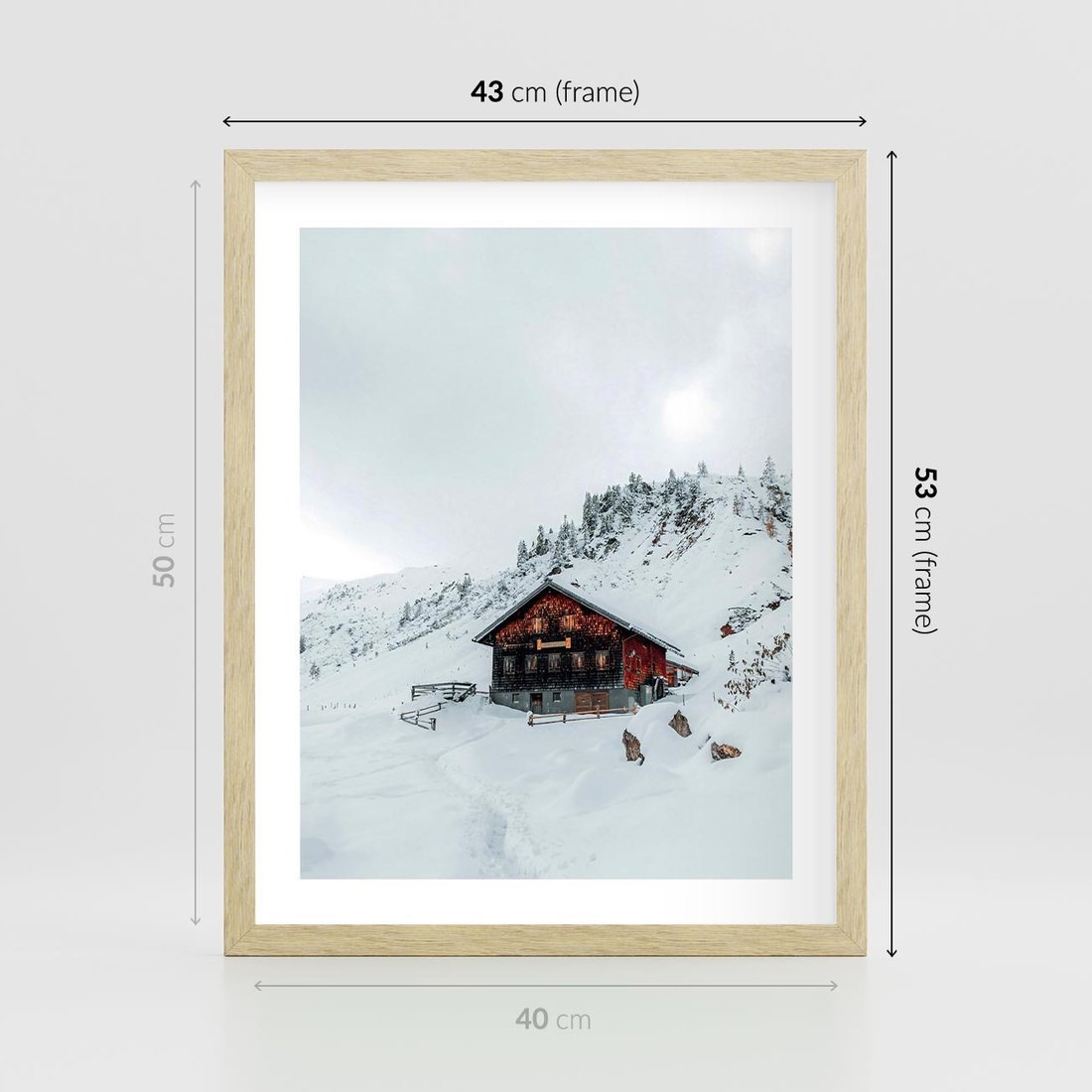 Plakat w ramie 40x50 - Zimowa Magia - domek, śnieg - rama drewno