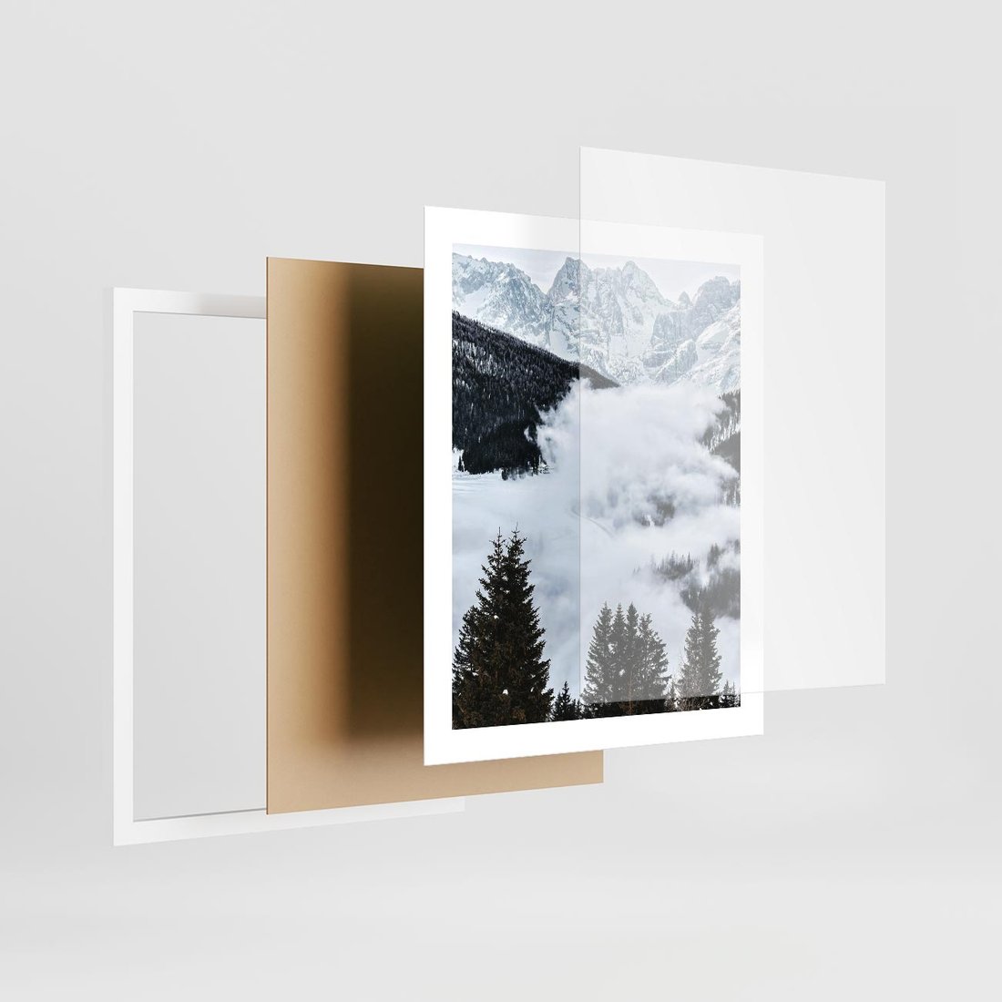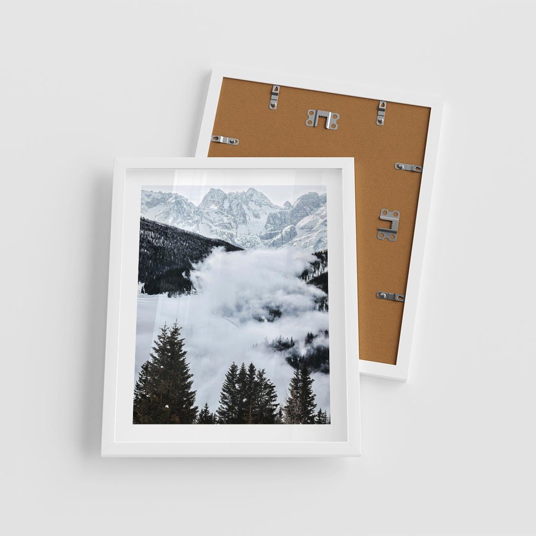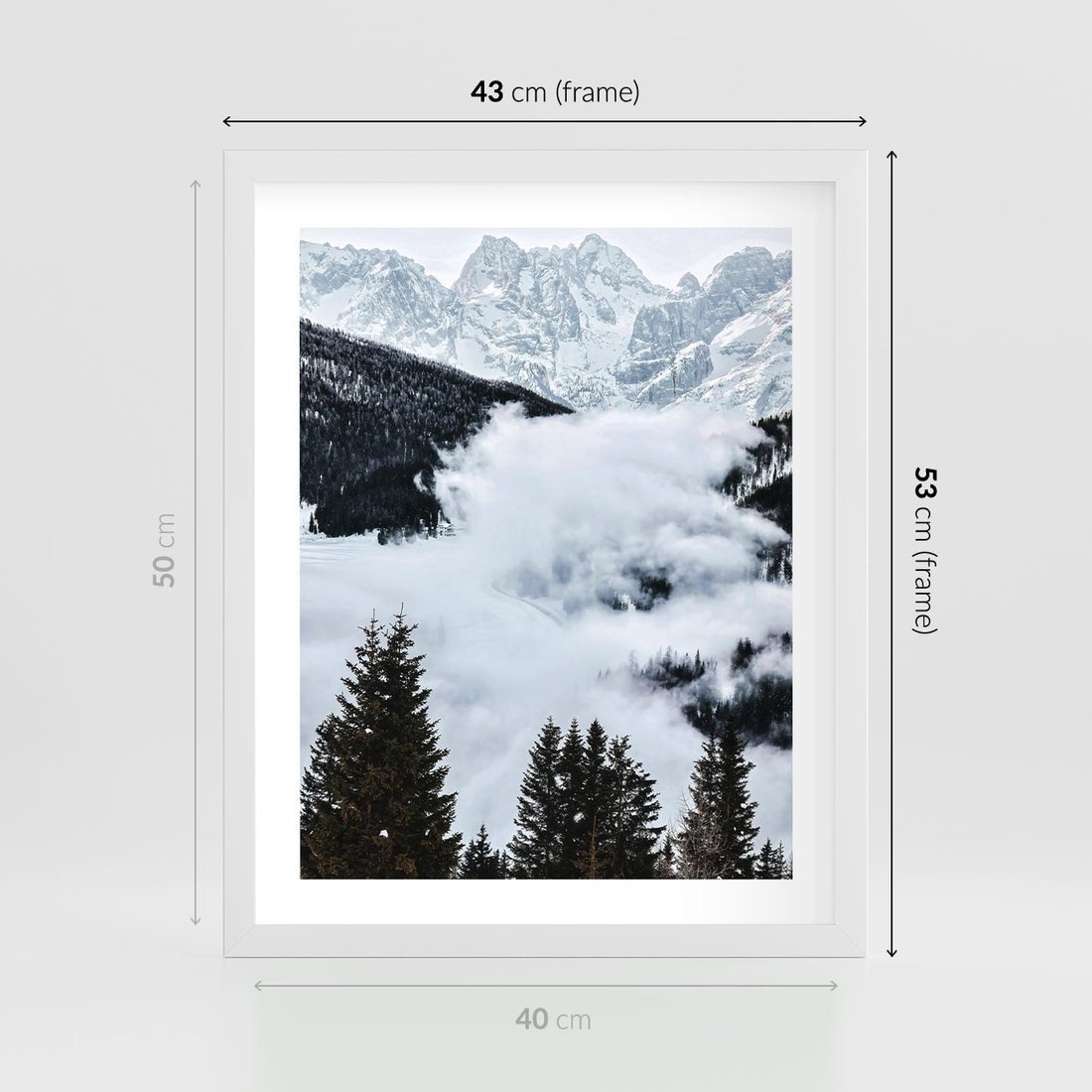 Plakat w ramie 40x50 - Zimowa Magia Gór: Śnieżne Szczyty - grajobraz górski, zima - rama biała