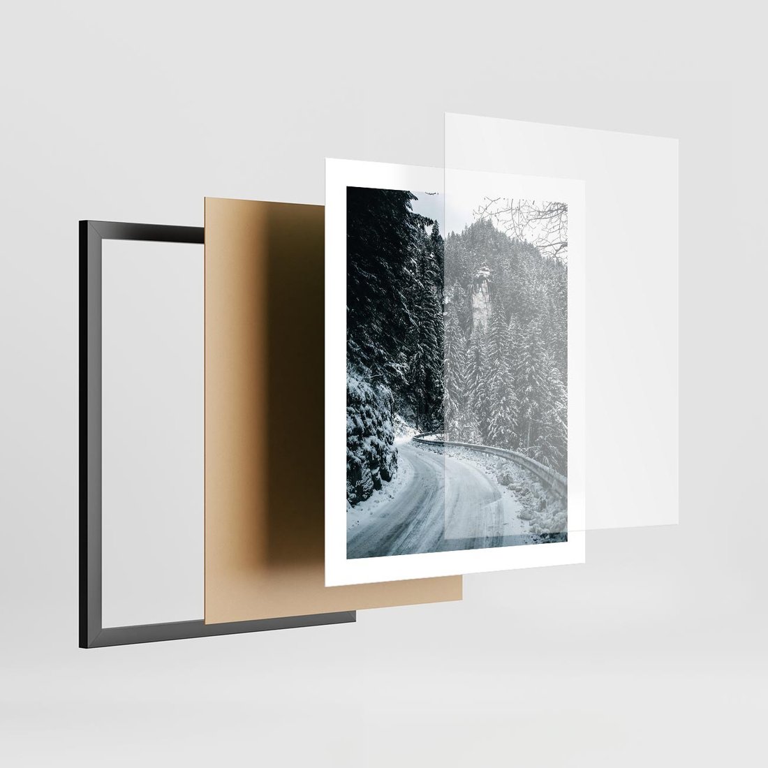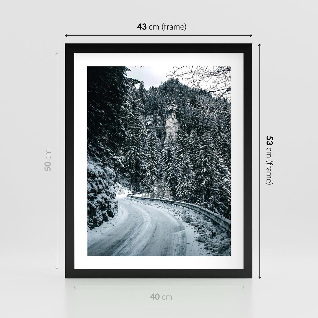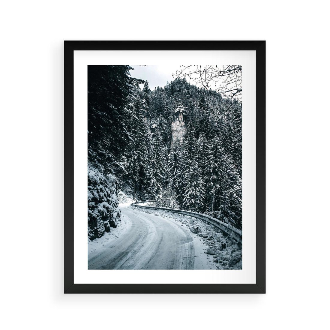 Plakat w ramie 40x50 - Zimowa Przygoda - zima w górach, droga - rama czarna