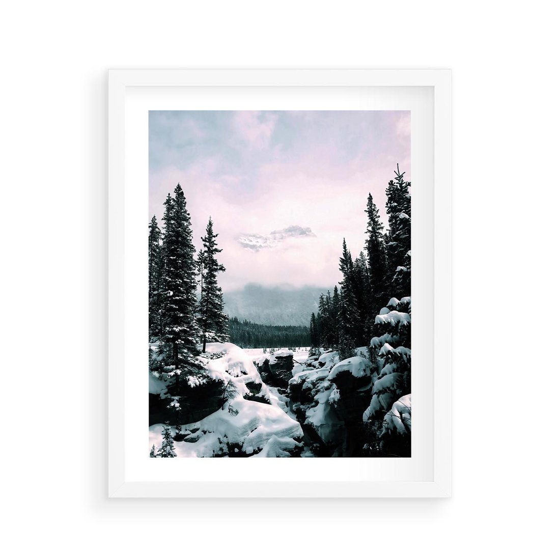 Plakat w ramie 40x50 - Zimowe Góry - zimowy krajobraz, góry - rama biała