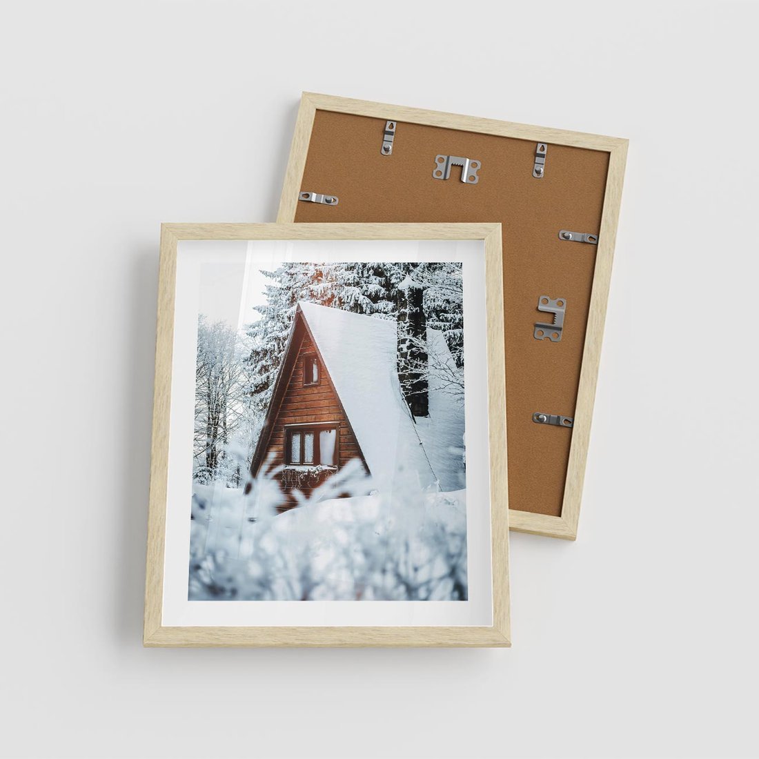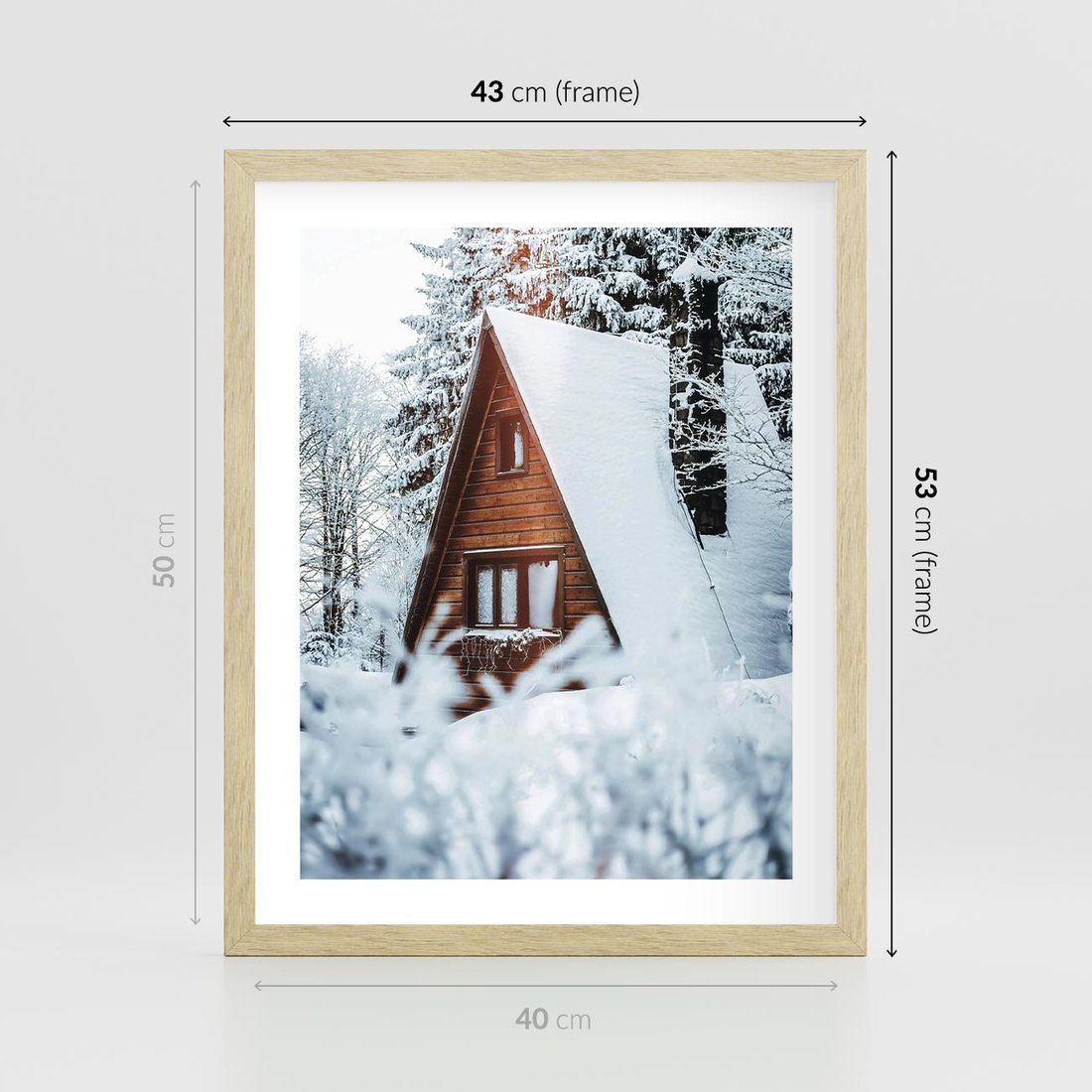 Plakat w ramie 40x50 - Zimowe Ustronie w Lesie - domek w lesie, zimowy las - rama drewno
