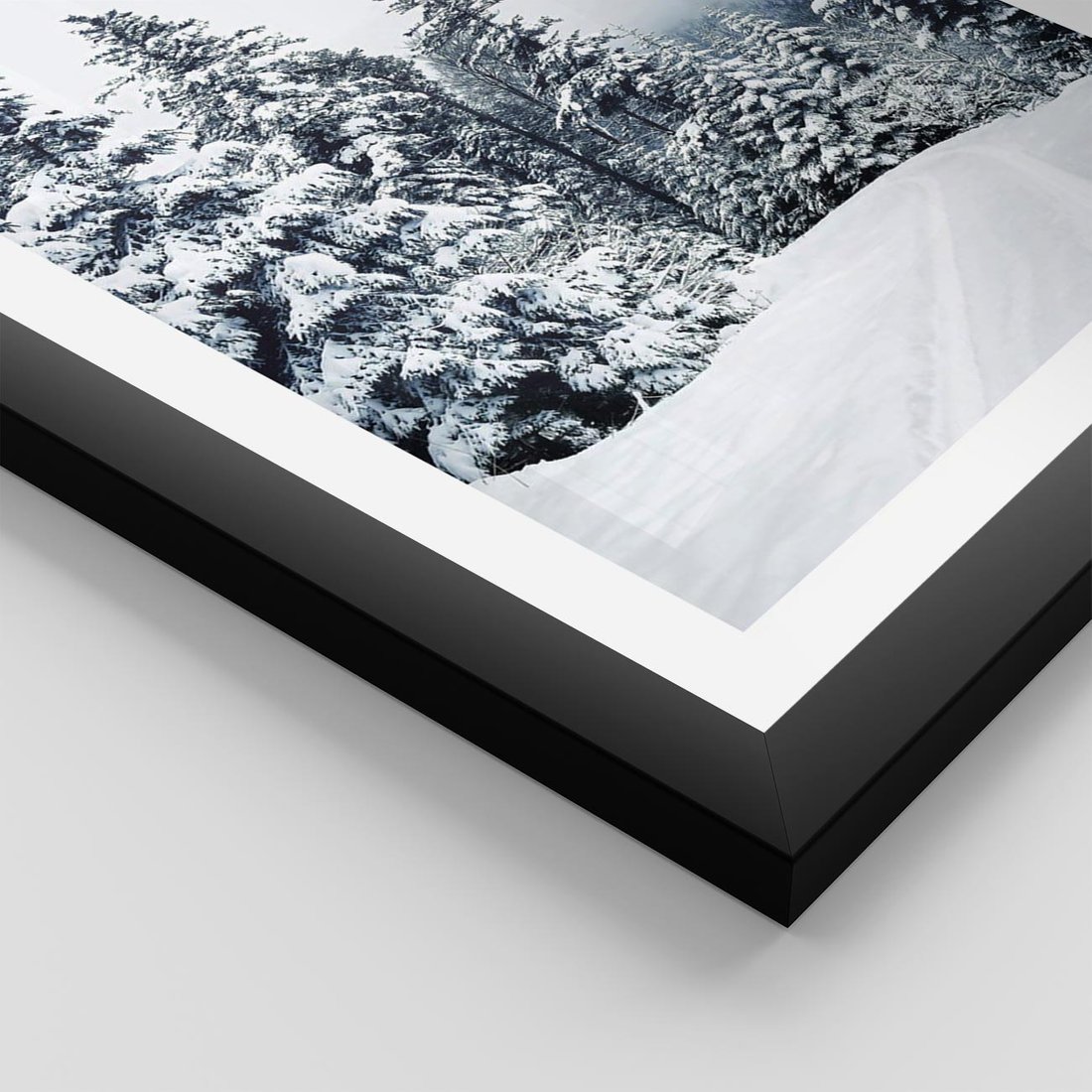 Plakat w ramie 40x50 - Zimowy Las Pod Kołdrą - las, zima - rama czarna