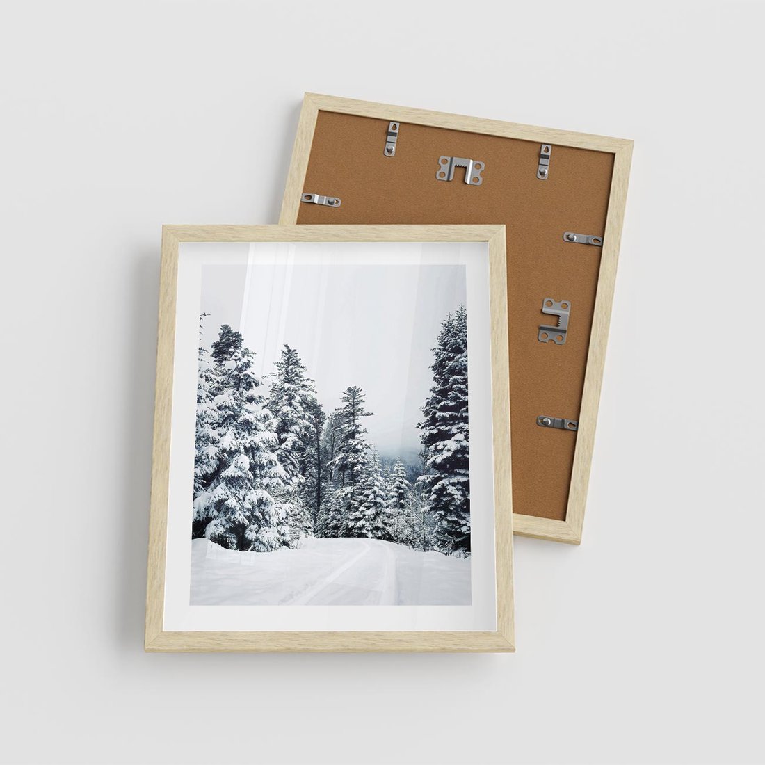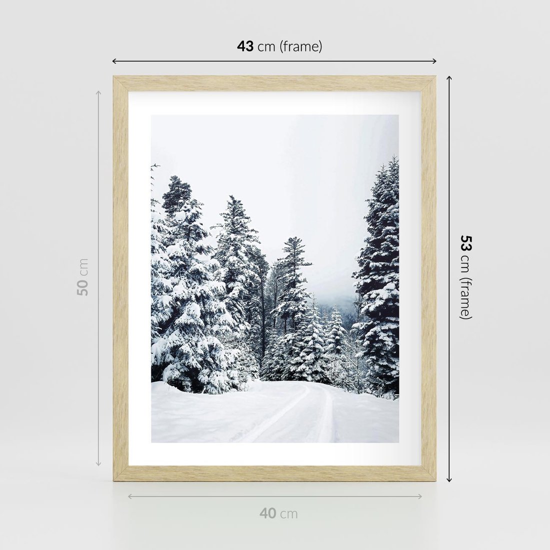 Plakat w ramie 40x50 - Zimowy Las Pod Kołdrą - las, zima - rama drewno