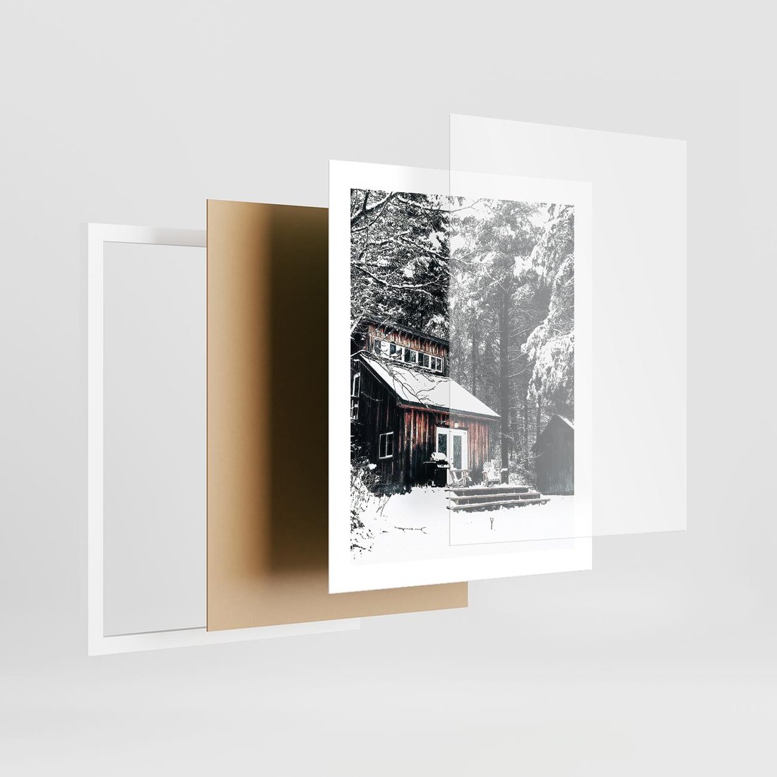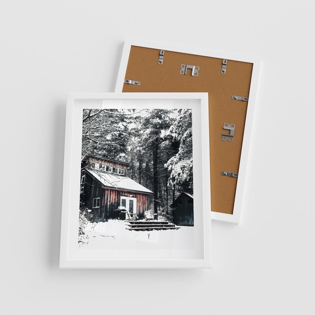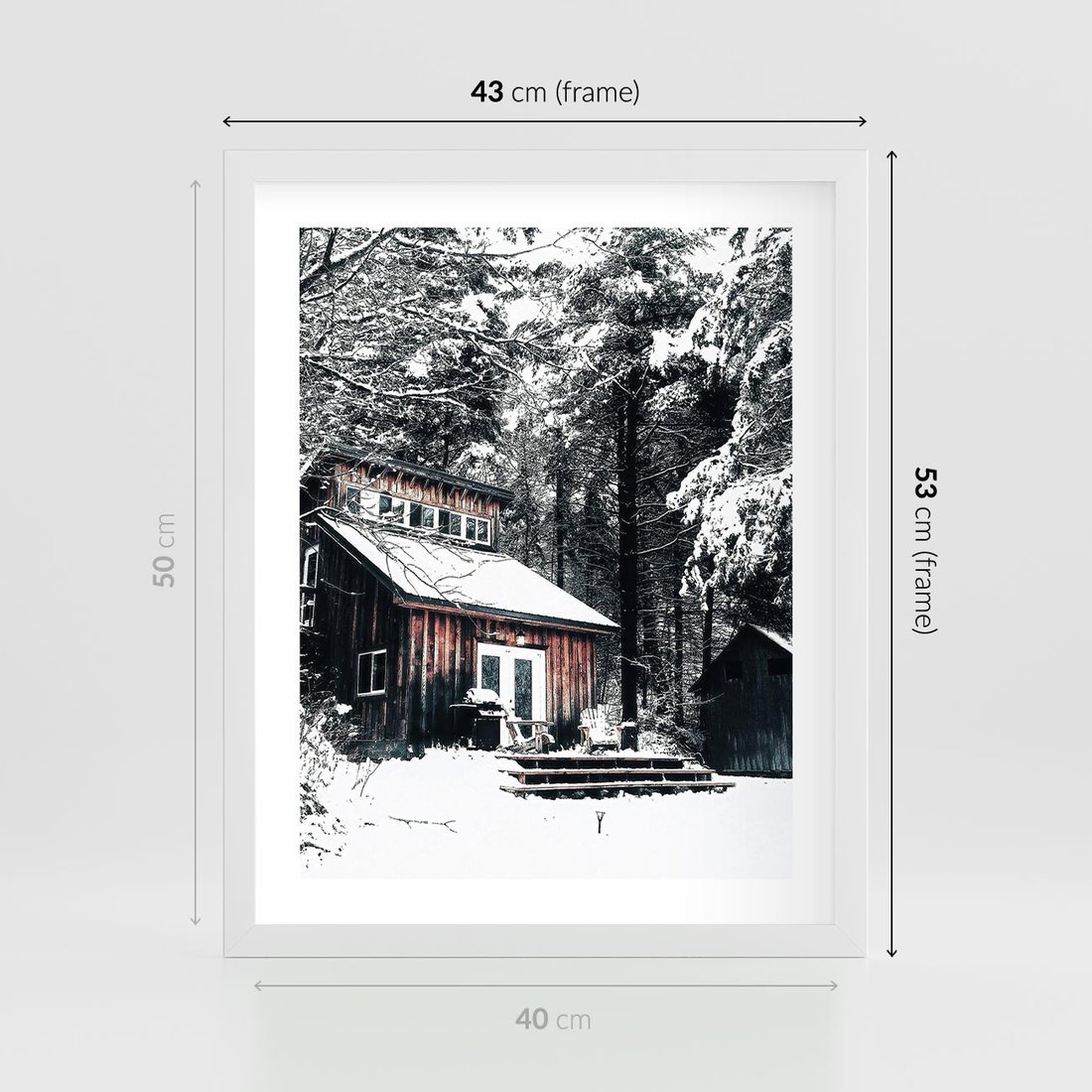 Plakat w ramie 40x50 - Zimowy Urok Drewnianego Domku - zima, drewniany domek - rama biała