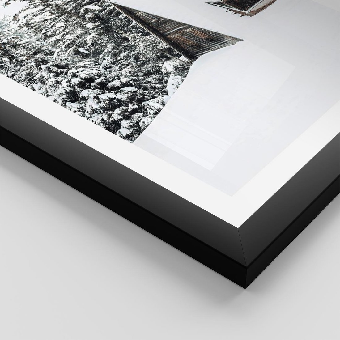 Plakat w ramie 40x50 - Zimowy Urok - śnieg, domek w górach - rama czarna
