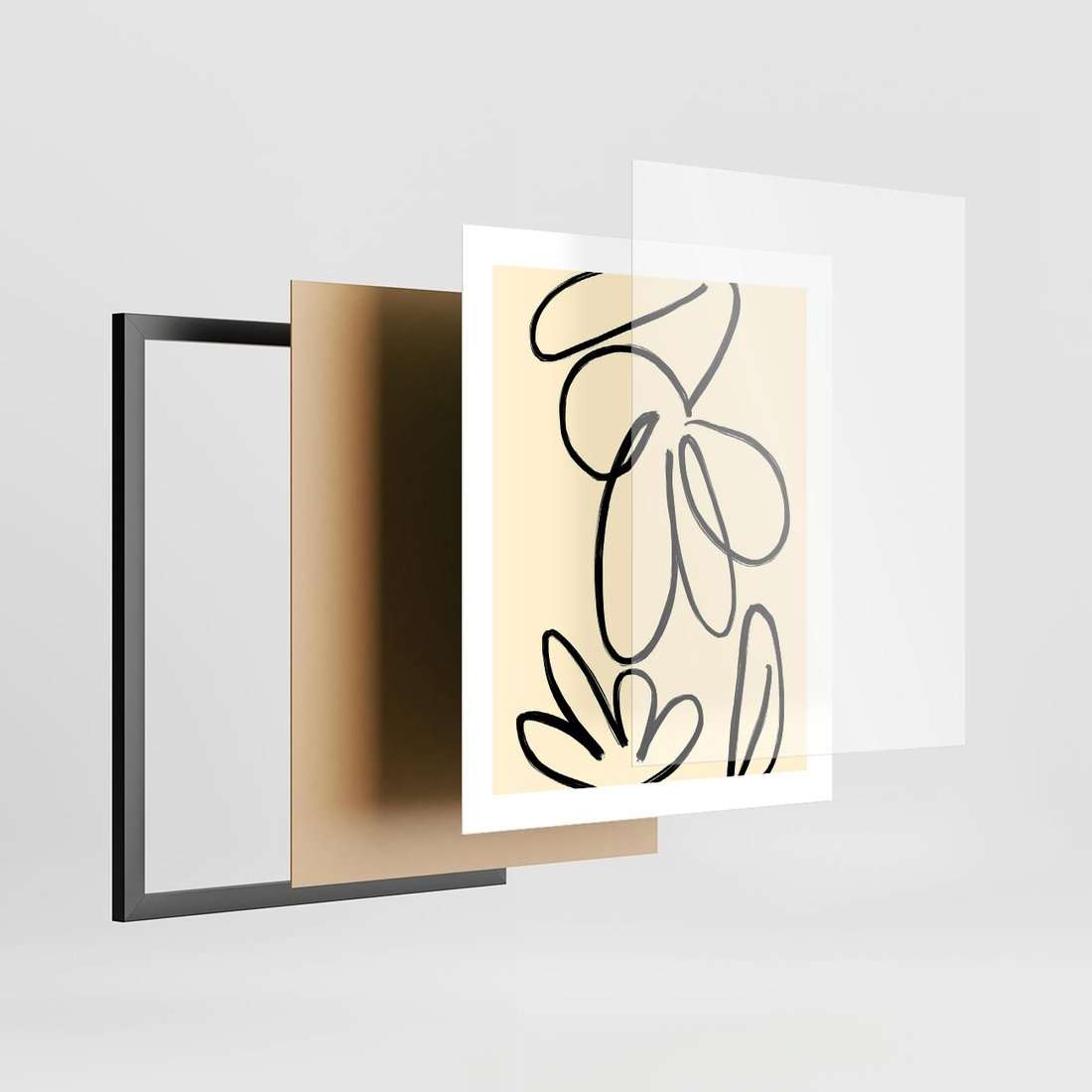 Nasza abstrakcyjna sztuka to delikatna kompozycja przypominająca kształtem kwiat. Wszystko to utrzymane jest w kontrastujących czerń i biel. To minimalizm w swojej najczystszej formie, gdzie subtelne linie tworzą elegancką i spokojną wizję, oddając hołd prostocie i pięknu.